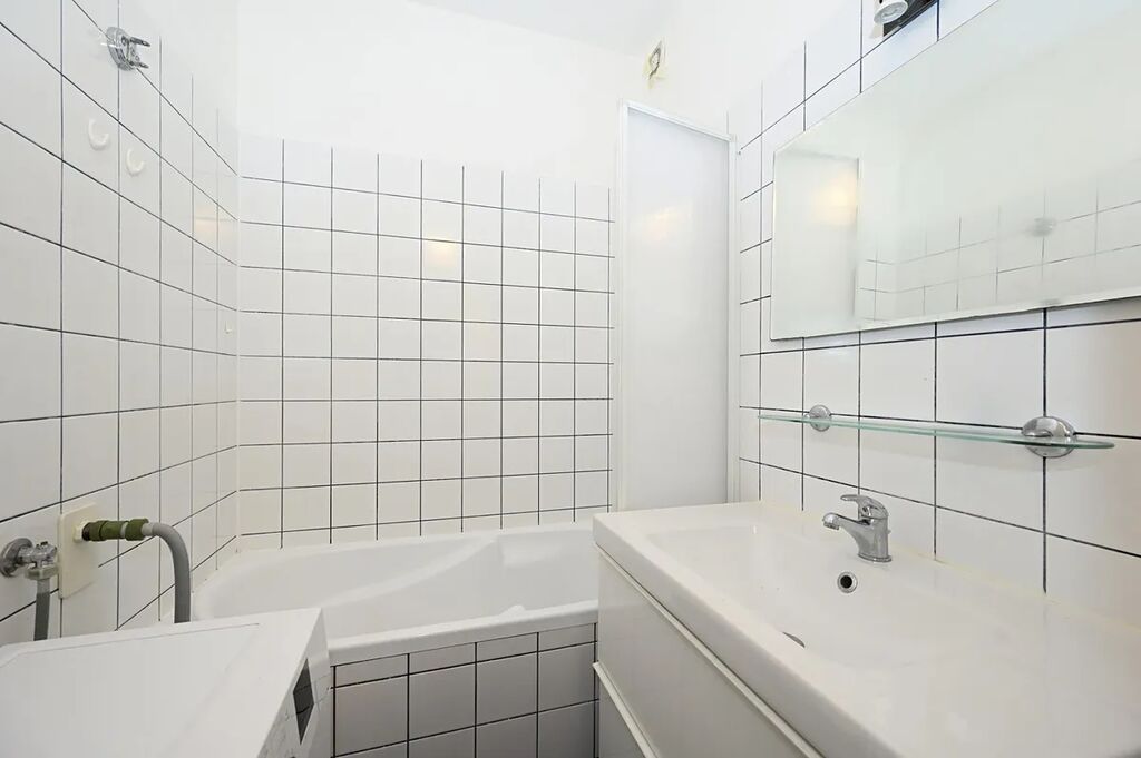 Koupelna s vanou a pračkou.