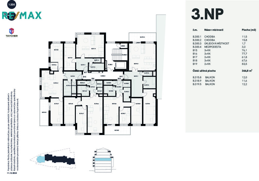V daném inzerátu představujeme byt typu 3+kk o celkové podlahové ploše 72,6 m2 s prostorným balkonem o samostatné ploše 11,6 m2. Byt bude situován v 3. NP podlaží. Vstupem se ocitněte v předsíní, velikost které umožňuje pohodlně umístit dlouhou vestavenou skříň. Z předsíně se dostanete do 25m2 velké obytné místnosti zároveň sloužící jako kuchyně a jídelna. Zde byt se rozděluje na další dvě časti: oddělenou ložnici o výměře 14,2m2 s vlastní oddělenou šatnou a velkého pokoje s výstupem na balkon. Dle většího pohodlí budoucích majitelů WC a koupelna jsou oddělené ve všech plánovaných bytech. Pokud potřebujete získat lepší dispoziční představu jsme připravili pro vás půdorys, který můžete najít na obrazových materiálech projektu. Standardně byt vybaven dřevěným podlahovým krytím v obytných místnostech a dlažbou v sanitárních místnostech, však je možnost se domluvit s developerem na individuálně změně těchto materiálů. Sklep 2,5 m2 je v ceně bytu.