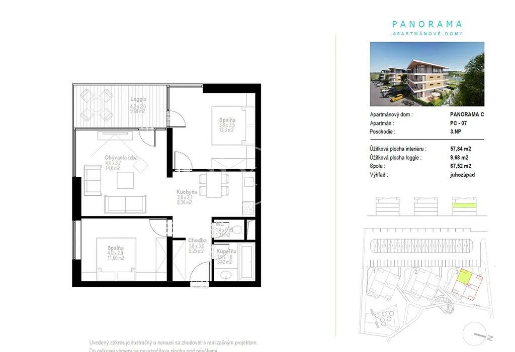 Nabízíme k prodeji byt 3+kk v nové rezidenci Marina Liptov nacházející se v obklopení majestátných vrchů, malebných národních parků a nejdelší slovenské přehrady Liptovská Mara. Byt se nachází ve 3.NP a disponuje obytnou plochou 58 m2 a celkovou užitnou plochou 68 m2. Rozložení bytu nabízí obývací pokoj s kuchyňským koutem, dvě ložnice a koupelnu, k bytu taktéž náleží lodžie 9,7 m2 přístupná z obývacího pokoje a ložnice. Dům má bezbariérový přístup a výtah, ke každému bytu náleží parkovací stání a sklepní kóje, které jsou již zahrnuty v ceně.