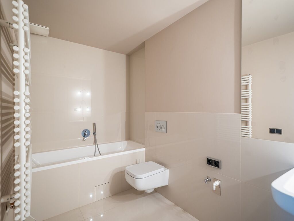 Layout: 2+kk. Brand new apartment, never lived in before, spacious bathroom with a bathtub, separate toilet.