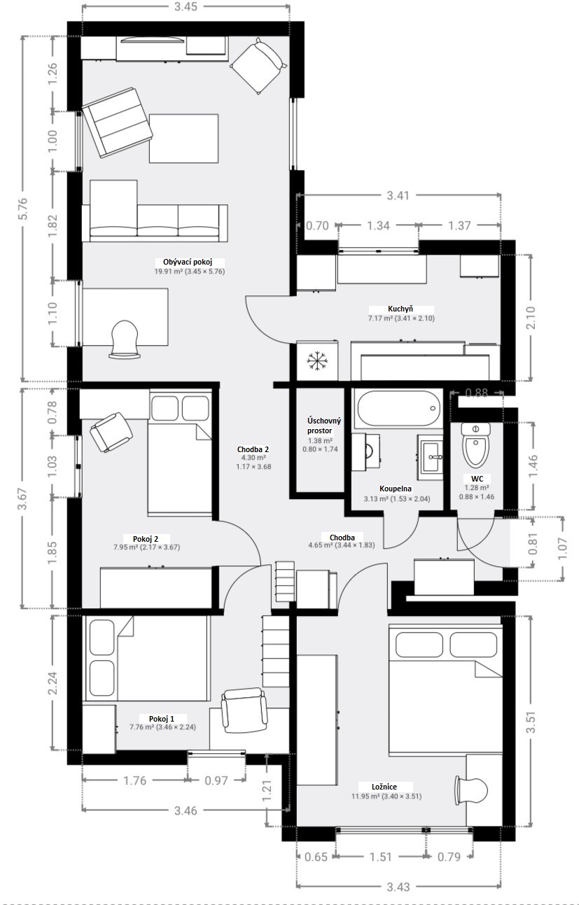 Byt je ideální pro rodinu/bydlení i jako investice a následný pronájem.