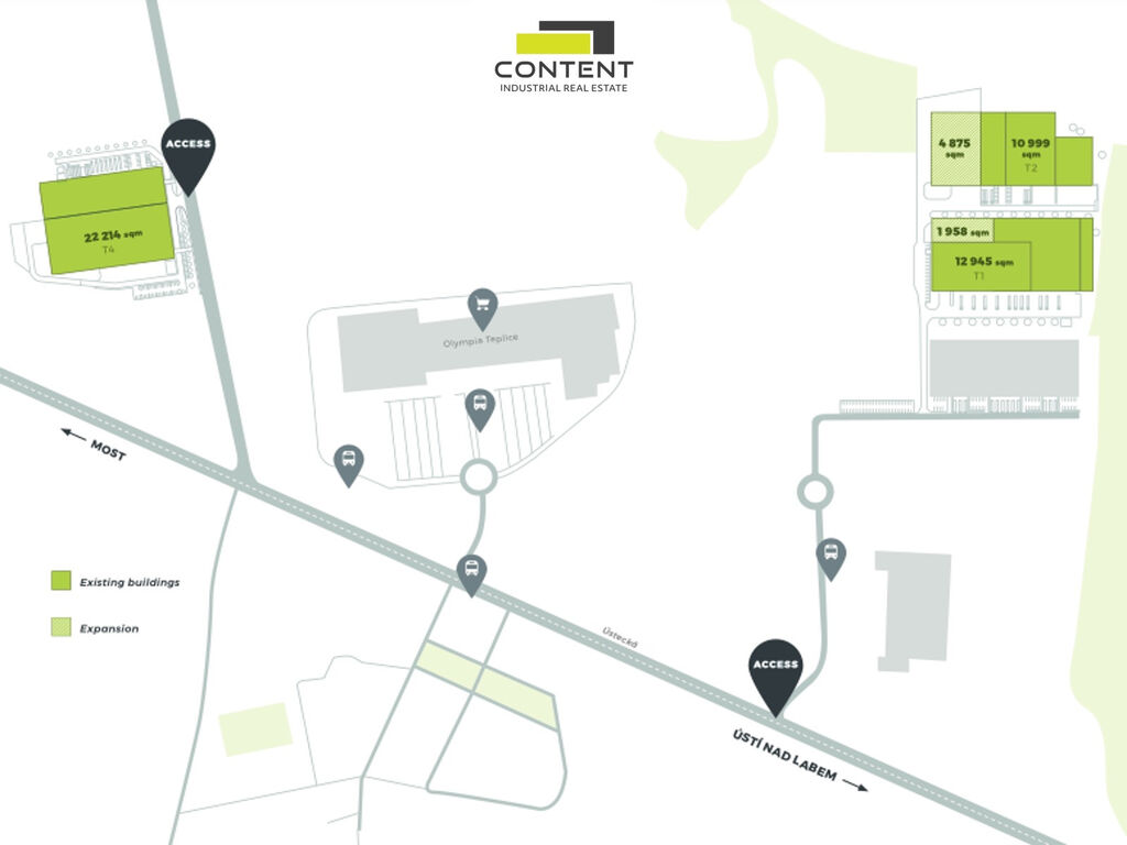 V zastoupení majitele a bez provize nabízíme kvalitní industriální prostory vhodné pro sklad nebo výrobu, umístěné v moderním komerčním parku, v těsné blízkosti dálnice D8 a německých hranic.