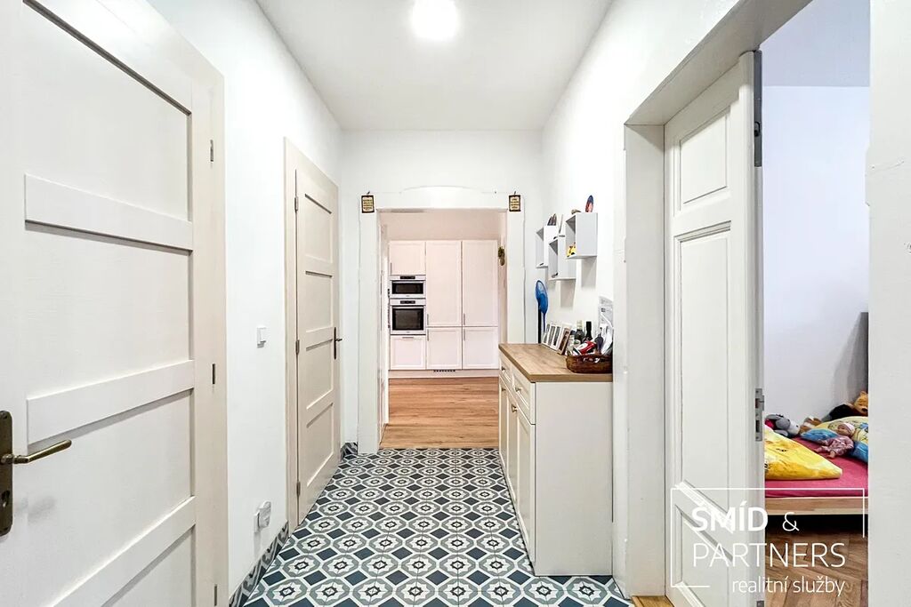 1. Byt 3+1 90 m2 ve zvýšeném přízemí s výhledem jak do ulice, tak do zahrady.