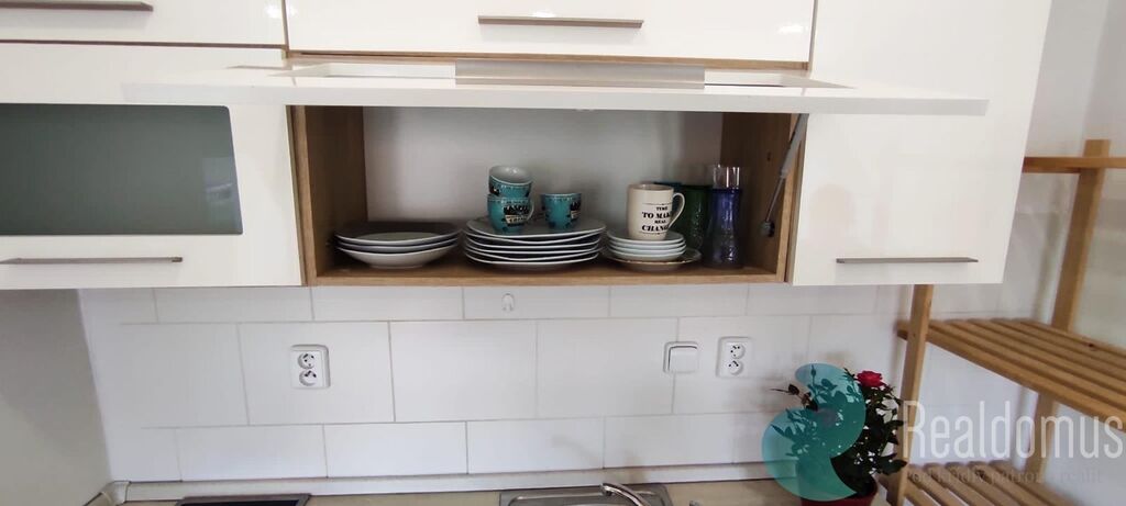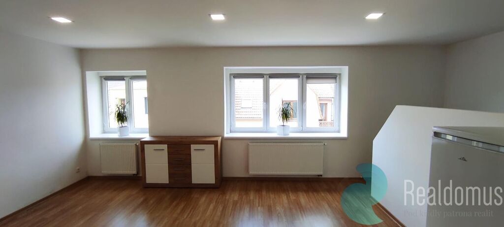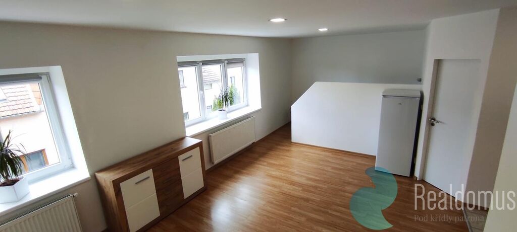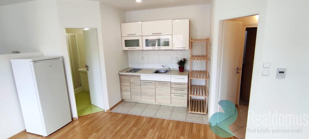 Byt tvoří prostorný pokoj s odděleným spaním, kuchyňskou linkou s lednicí, pračkou se sušičkou, dále předsíň a koupelna. Součástí je možnost využití sklepa dle domluvy a také balkón, který je společný pro dva byty.