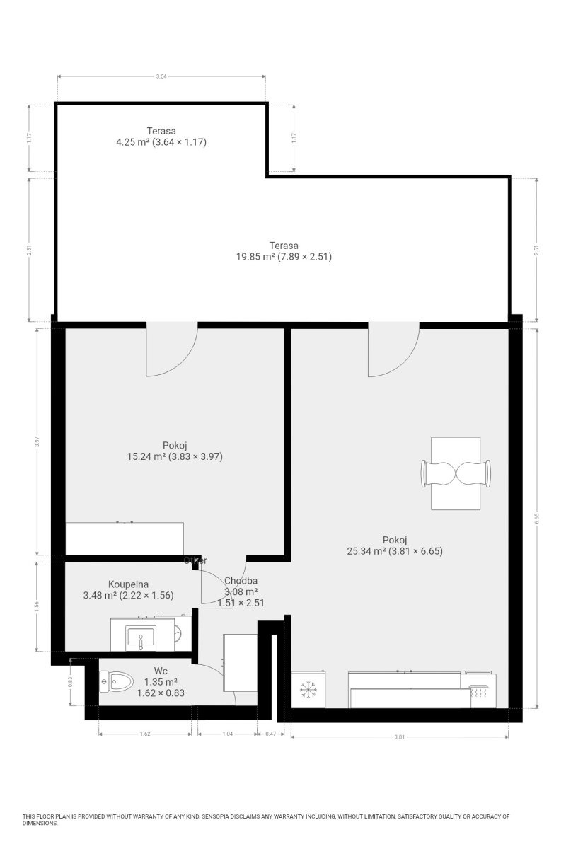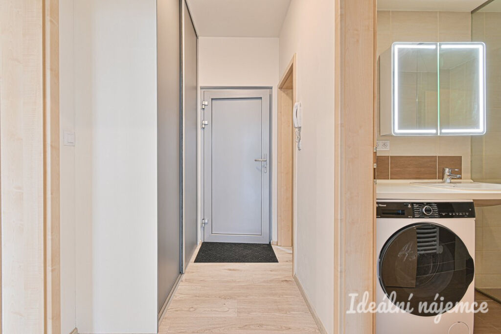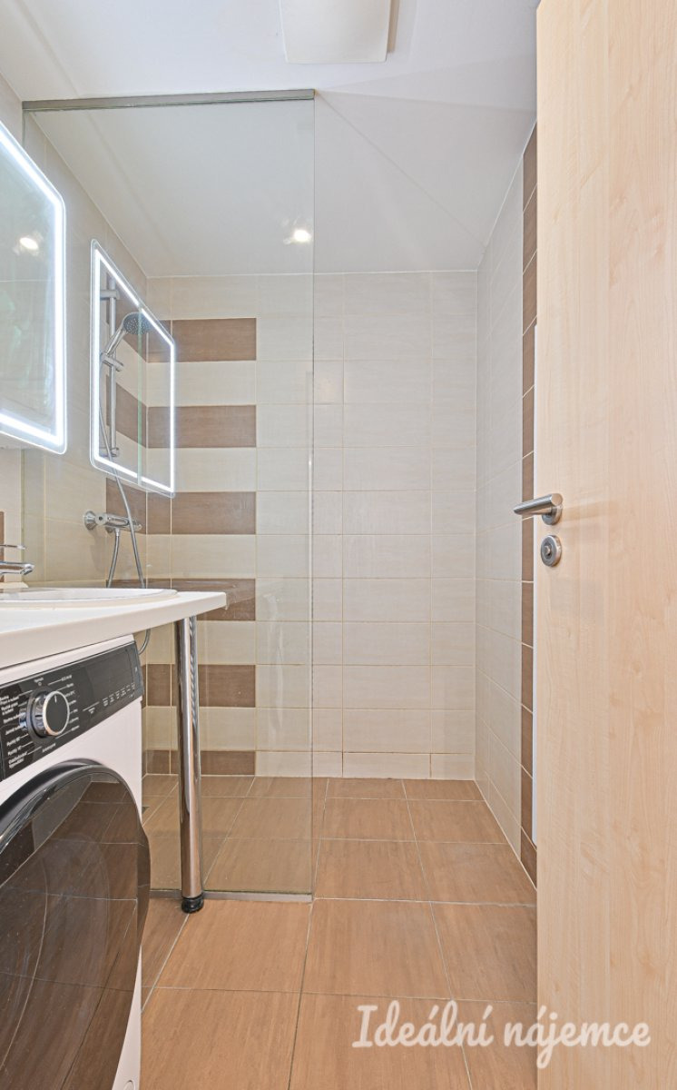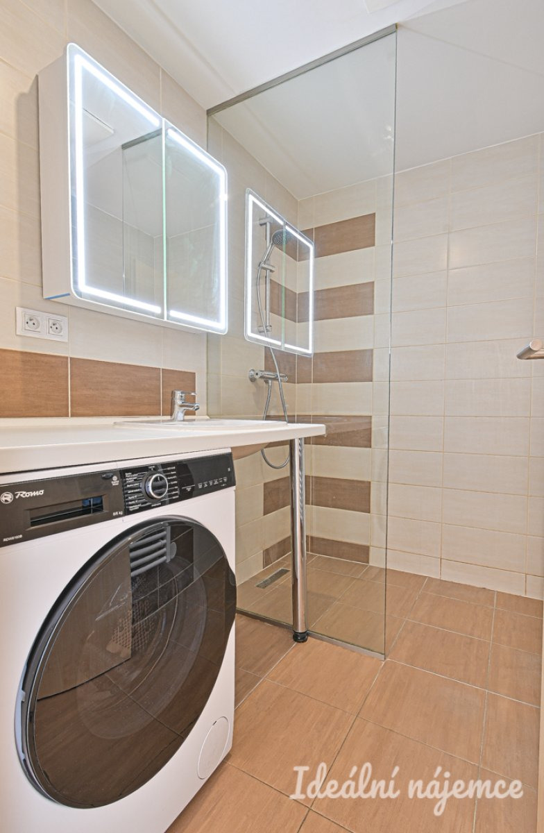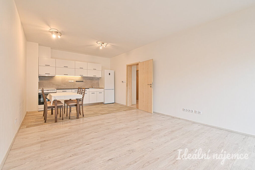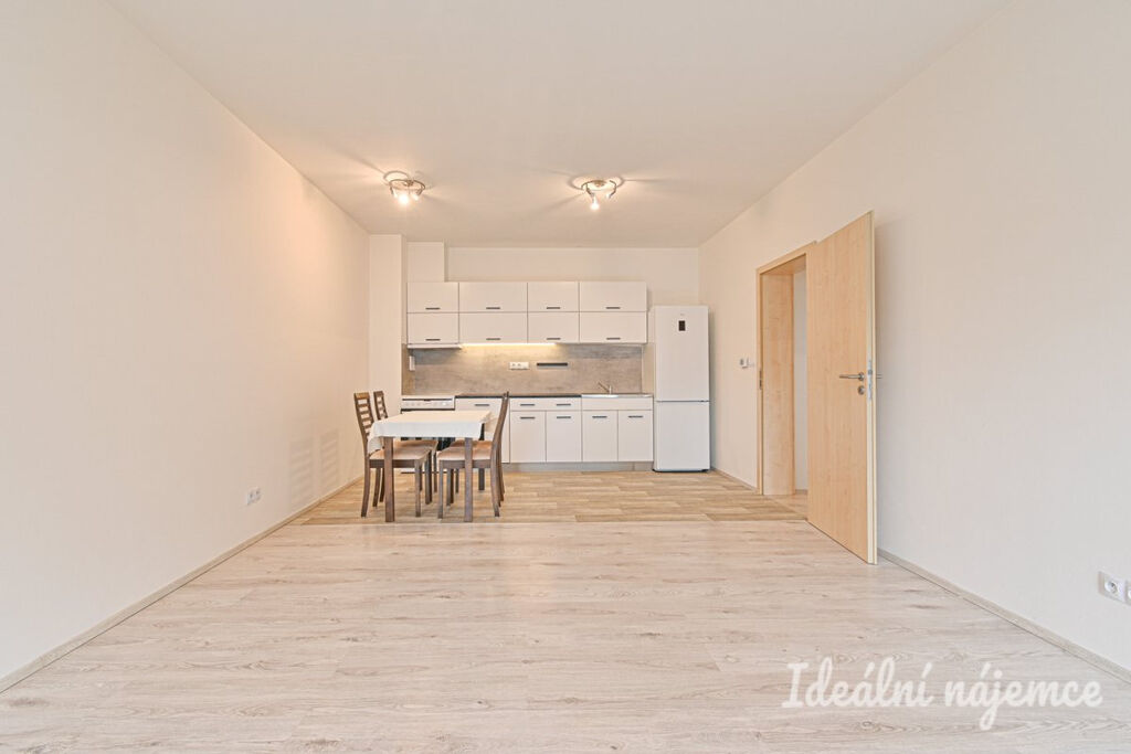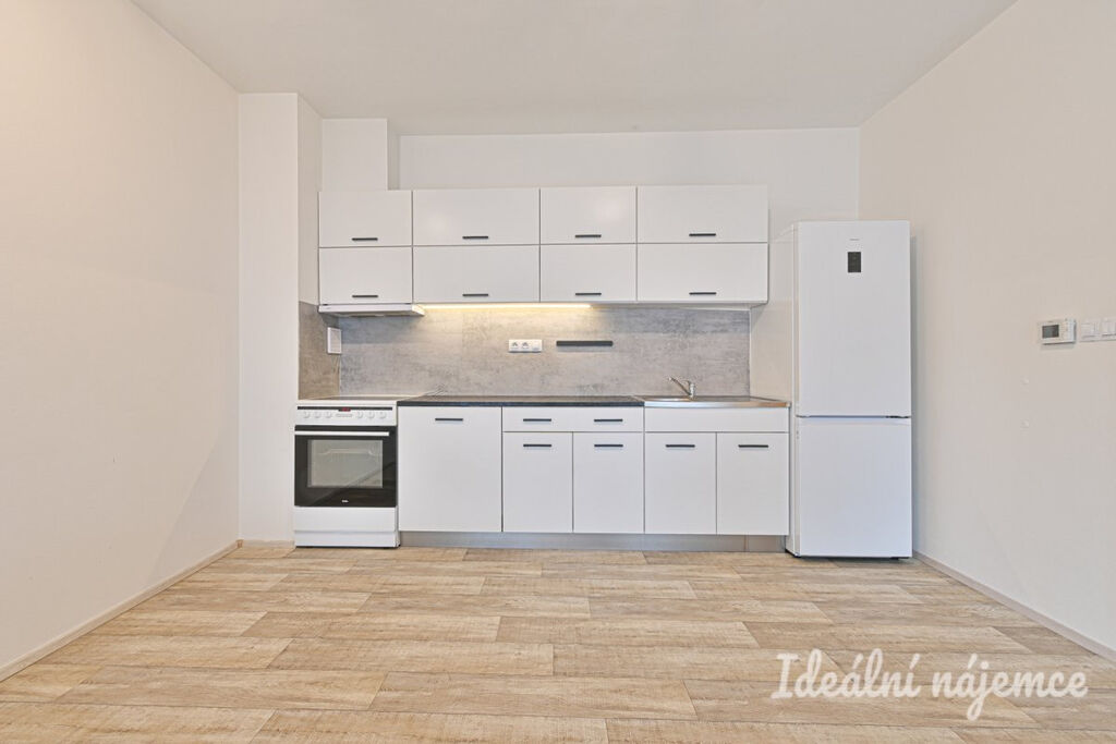 Byt se nabízí nevybavený. Kuchyně disponuje myčkou, elektrickou troubou se sporákem, lednicí a digestoří. V místnosti najdete taktéž jídelní stůl se židlemi, obývací část lze dovybavit dle Vašich preferencí. Samostatná ložnice je zařízena vestavěnou skříní. V koupelně je sprchový kout, umyvadlo a pračka.