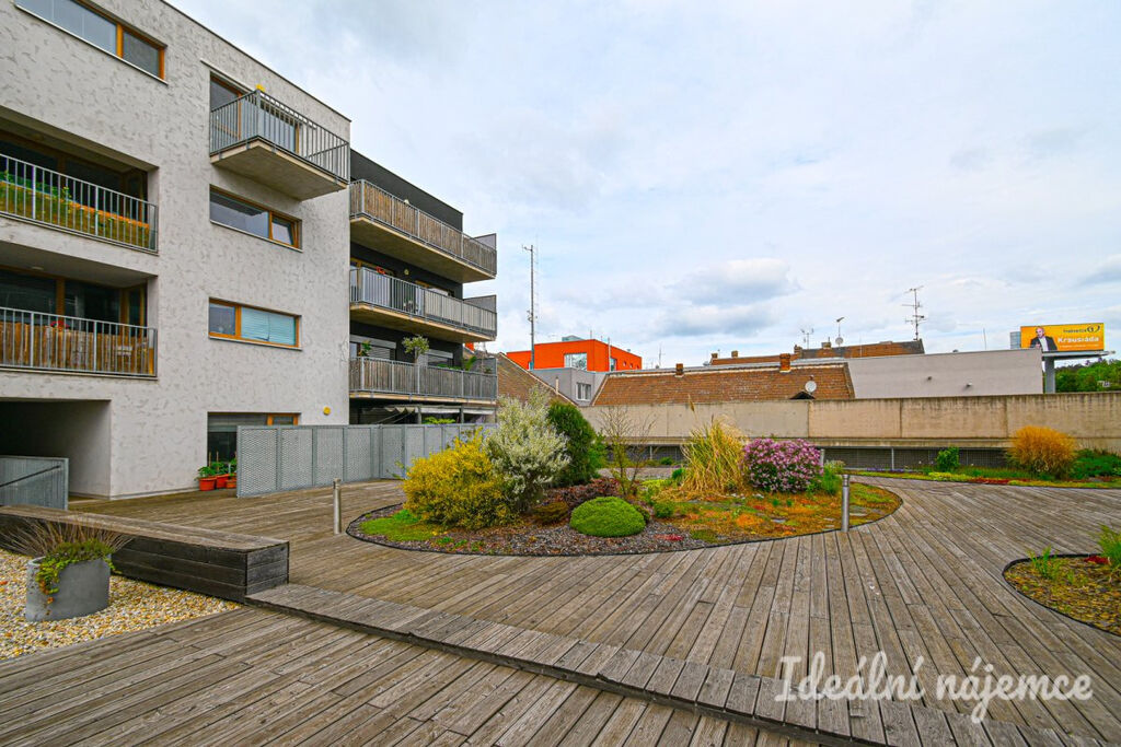 K dlouhodobému podnájmu nabízíme moderní byt o dispozici 2+kk v oblíbené lokalitě Brno-Královo Pole. Byt o celkové výměře 56 m2 se nachází v 1. podlaží cihlového domu s výtahem. K bytu navíc patří také nadstandardní předzahrádka 24m2 a sklep.
