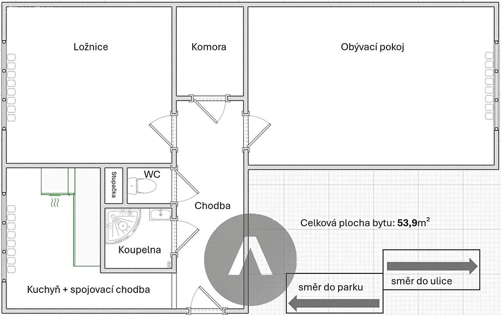 Rekonstrukce jádra, elektřiny a podlah dává bytu moderní vzhled a jistotu nízkých starostí. Kuchyň a ložnice jsou orientovány na severovýchod do parku, takže ráno vás probudí klid a zeleň, zatímco obývací pokoj orientovaný na jihozápad přináší dostatek světla po celý den. Náklady na provoz jsou příznivé: elektřina cca 1 000 Kč a ostatní poplatky včetně topení a fondu oprav 3 091 Kč měsíčně. Energetická náročnost domu C – úsporná (102 kWh/m²/rok).