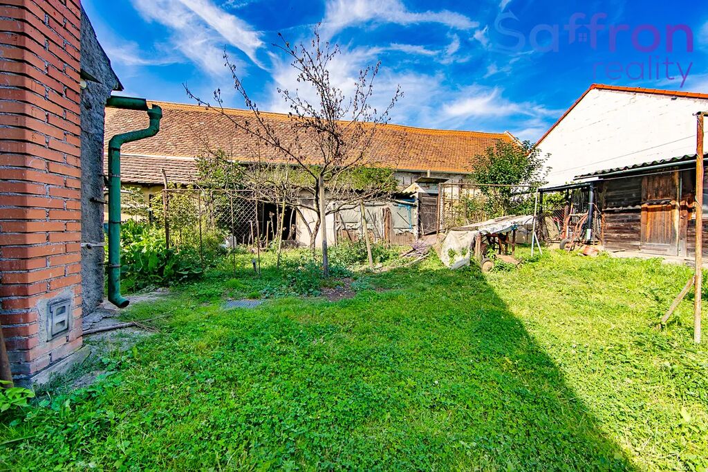 Za dvoukřídlou bránou se otevírá dvůr s parkováním na vlastním pozemku, na který navazuje menší chatka a několik hospodářských přístavků vhodných pro dílnu, sklad či dočasné bydlení během rekonstrukce. Samotný dům je před rekonstrukcí střechy, interiérů i rozvodů, což dává novému majiteli volnost navrhnout dispozice a standard přesně podle svých představ a plně využít potenciál zahrady i dvora k propojení interiéru s venkovním prostorem.