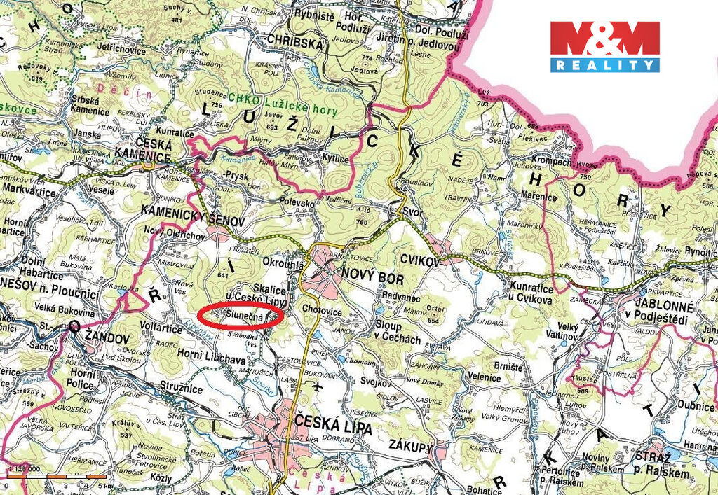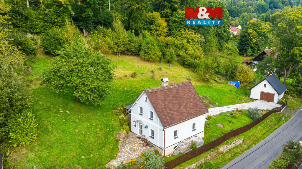 Exkluzivně nabízíme k prodeji rodinný dům rodinné rekreaci, nebo k trvalému bydlení o CP pozemku 3520 m2 v malebném a vyhledávaném kraji obce Slunečná, 9 km od okresního města České Lípy. Cihlový dům prošel kompletní rekonstrukcí a je připraven k okamžitému nastěhování. Dům se rozkládá na 2 NP a 1 podzemním. V INP je kuchyně propojená s obývacím pokojem s kuchyňskou linkou Ikea s mramorovou deskou a vestavěnými spotřebiči, lednice a mrazák, myčka, varná sklokeramická deska, el. trouba. Koupelna se sprchovým koutem a WC. Samostatná technická místnost na pračku a sušičku. V IINP je 1 samostatný pokoj a 2 propojené pokoje. Dům je vytápěn krbovými kamny s výměníkem, jako další alternativa je elektrický kotel umístěný v suterénu domu, kde se nachází i bojler na teplou vodu. Vjezd na zahradu o výměře 3375 m2 zajišťují vrata na dálkové ovládání. V dolní části byla postavena garáž, která může sloužit i jako zahradní domek, případně pro investiční příležitost. Domluvte si prohlídku.