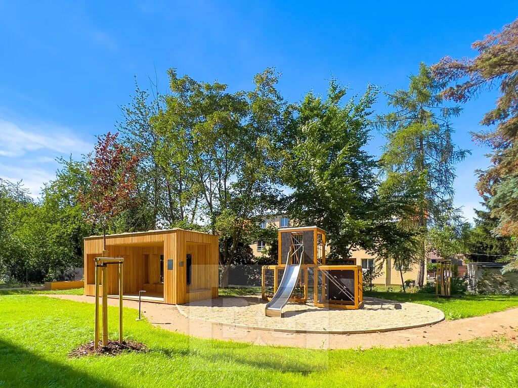 Byt se skládá z obývacího pokoje s kuchyňským koutem, ložnici, koupelny se sprchou a WC, chodby. Vstup na terasu, kde nechybí kohout na zalíti rostlin, je možný z obýváku a ložnice. Východně orientovaná francouzská okna zajišťují dostatek světla v místnostech. Kuchyňský kout je kompletně a moderně vybaven (varná deska, el. trouba, mikrovlnka, lednice s mrazákem, myčka). Plovoucí podlaha. K bytu naleží sklep a parkovací stání v domovní garáži. V krásném zeleném dvoře je dětské hřiště a místo pro odpočinek obyvatelů.