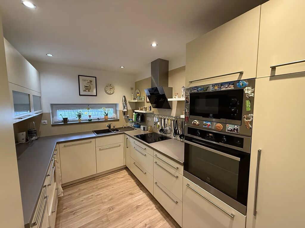 • Obývací pokoj s kuchyňským koutem (44 m²) – kuchyně vyrobena na míru, spotřebiče značky Electrolux (myčka, trouba, mikrovlnná trouba, indukční deska), dvě lednice a dva mrazáky Whirlpool