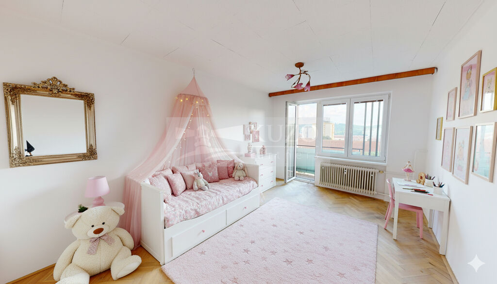 • Dispozice a Prostor: Praktický a velmi žádaný byt 4+1 (3 ložnice, obývací pokoj a samostatná kuchyně). Výměra dle katastru činí 85,5 m². Všechny prostory si můžete detailně prohlédnout v moderní 3D vizualizaci (Matterport, který uvadí plochu 88,6m2).