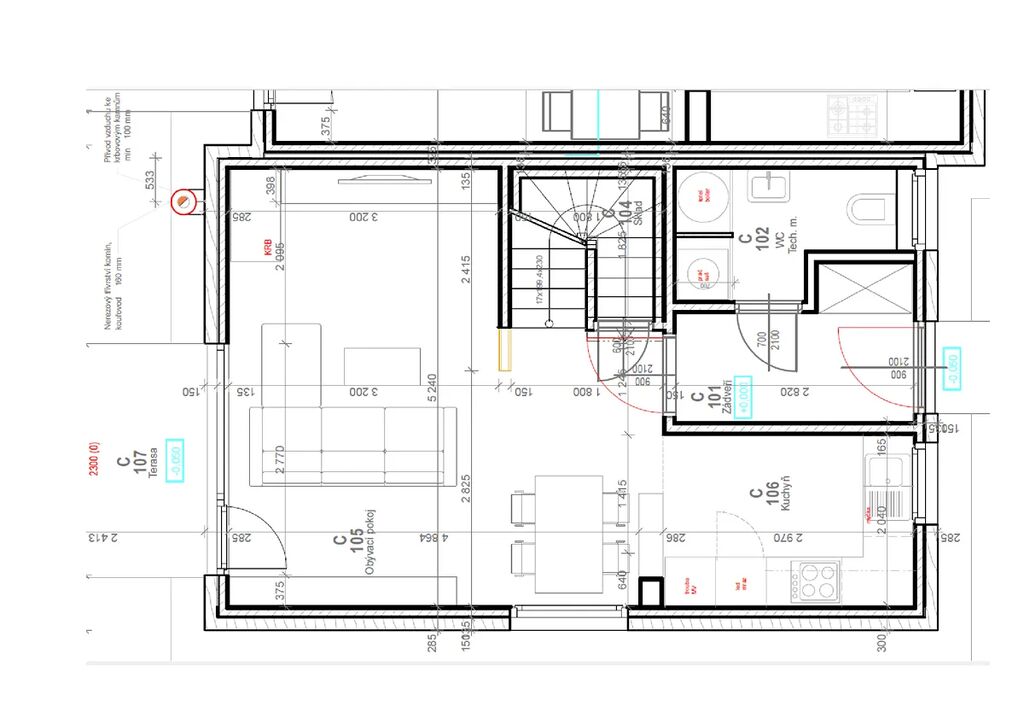 Dispozice pak nabídne v 1. NP obývací pokoj s krbovými kamny a přímím vstupem na terasu, jenž je plynule propojený s prostorem kuchyně. Ta je osazena novou kuchyňskou linkou se spotřebiči (lednice s mrazákem, myčka, digestoř, mikrovlnná trouba, elektrická trouba, varná deska, koš na tříděný odpad, dřez + baterie), chodbu s vestavnou skříní, technickou místnost s wc umyvadlem a kotlem.