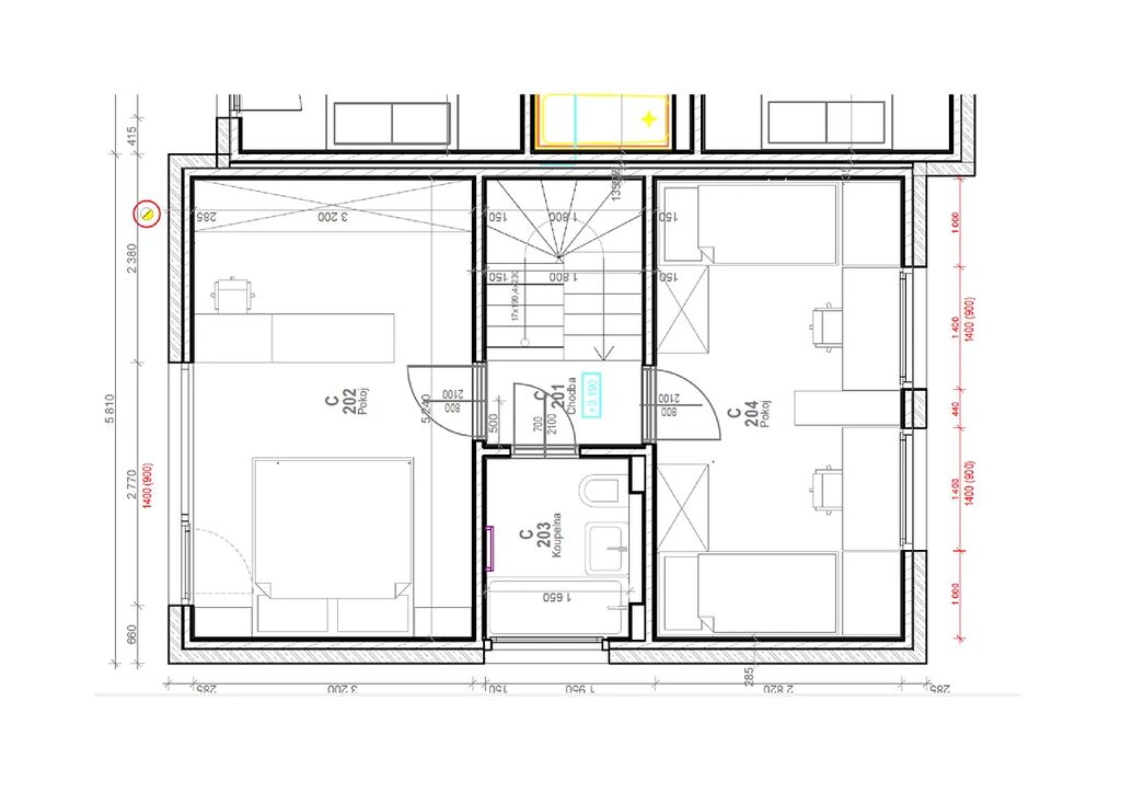 2. NP nabídne prostorný dětský pokoj, ložnici (ta je vybavena velkou šatní skříní), koupelnu s vanou (koupelnová skříňka + zrcadlo).