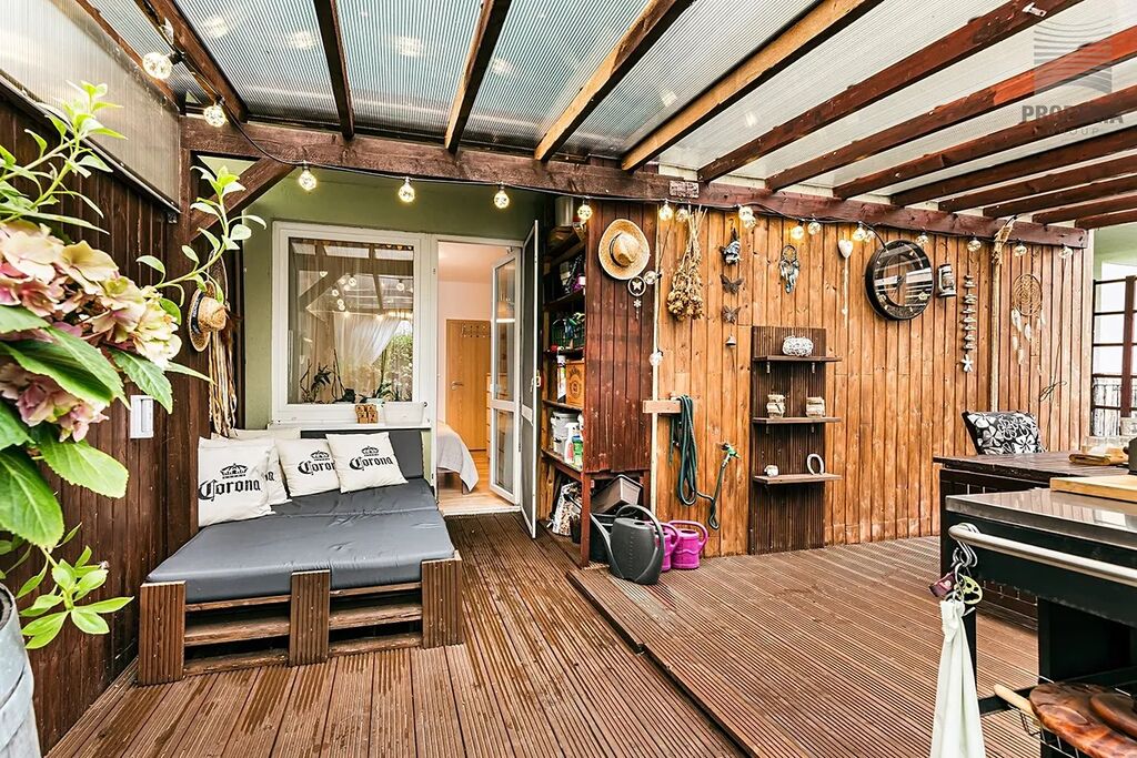 Tento moderní byt o rozloze 68 m² vyniká promyšlenou dispozicí a kvalitním provedením. Jeho velkou chloubou je prostorná terasa se soukromou zahradou o velikosti 62m², která vybízí k odpočinku i příjemnému posezení s přáteli. Na zahradu je přivedena voda i elektřina, což umožňuje její praktické využití a pohodlnou údržbu. Přístup na zahradu je zajištěn nejen z obývacího pokoje, ale také přímo z ložnice.