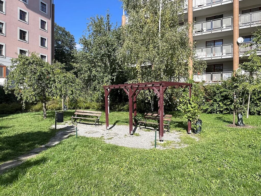 Oba pokoje mají pěkný, volný výhled do zeleně. Plochy místností jsou: obývací pokoj s 18,34m2, kuch. kout 5,66 m2, ložnice 12,49 m2, koupelna s WC 4,78 m2, předsíň 3,68 m2 a terasa 9,83 m2. K dispozici je zabezpečená zděná sklepní kóje o ploše 3 m2. K dispozici je možnost využití příjemného vnitrobloku domu s posezením.
