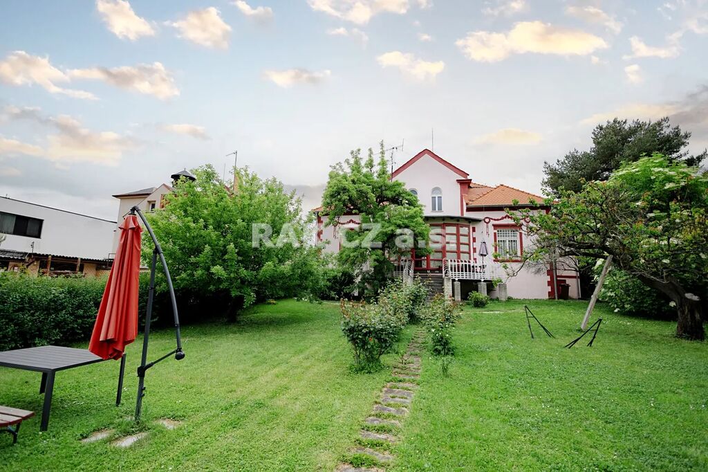 Předmětem prodeje je samostatný, zděný dům, postavený v roce 1906 na vlastním, k jihu velmi mírně svažitém, zcela oploceném pozemku, pravidelného obdélníkového tvaru, o výměře 788 m2, ve velmi klidné ulici (se zákazem zastavení, bez aut) Mrštíkova, Praha 10 – Strašnice, jen 250 m od metra A – Strašnická. Dům je částečně podsklepen, má jedno nadzemní podlaží a podkroví. Celková užitná plocha činí cca 300 m2, obytná plocha cca 180 m2. Zastavěná plocha činí 212 m2, zahrada 576 m2. Dům má prakticky čtvercový půdorys, členitou střechu s dominantou věže, velkým balkonem krytý vstup, vjezd z ulice, vzrostlá okrasná zahrada, orientovaná na jih do vnitrobloku, skýtá maximum soukromí. V suterénu jsou technické místnosti (sklep, dílna, kotelna) ; v I. nadzemním podlaží je zádveří, vstupní hala, obývací pokoj, se vstupem na velkou terasu a zahradu, kuchyně, spíž, dvě ložnice, koupelna, toaleta, prádelna a skladovací místnost ; v podkroví je ložnice, koupelna, toaleta a hala se vstupem na velký balkon s panoramatickým výhledem na okolní zástavbu, komora a dvě větší půdy, vhodné k vestavbě/rozšíření obytné plochy. Dům je napojen na elektřinu, veřejný vodovod, veřejnou kanalizaci a plyn a v posledních letech prošel citlivou rekonstrukcí střechy, oken a fasády. Vytápění a ohřev vody zajišťuje nový, plynový kondenzační kotel Viessmann. Příjezd je zajištěn prostřednictvím obecní asfaltové komunikace, parkování vozu na pozemku. Místo nabízí výbornou dopravní dostupnost autem i veřejnou dopravou (blízkost napojení na Jižní spojku i Pražský okruh ; tramvaj, či metro A – Strašnická 250 m od vily). Perfektní je rovněž plná občanská vybavenost v pěší vzdálenosti, či blízkém okolí. PENB není zpracován (třída G) předpoklad C-D. Více informací u makléře. Dům i jeho okolí vám rádi osobně ukážeme.