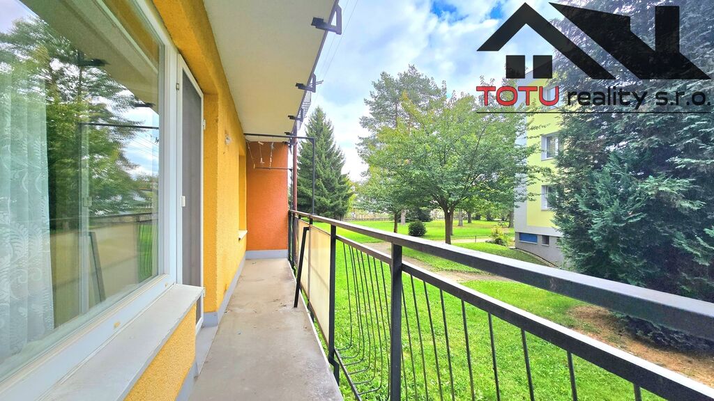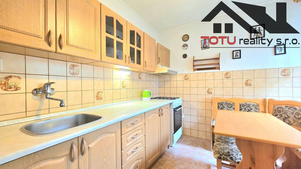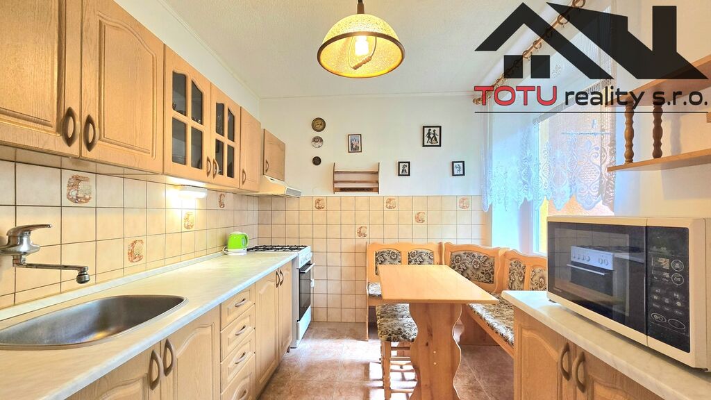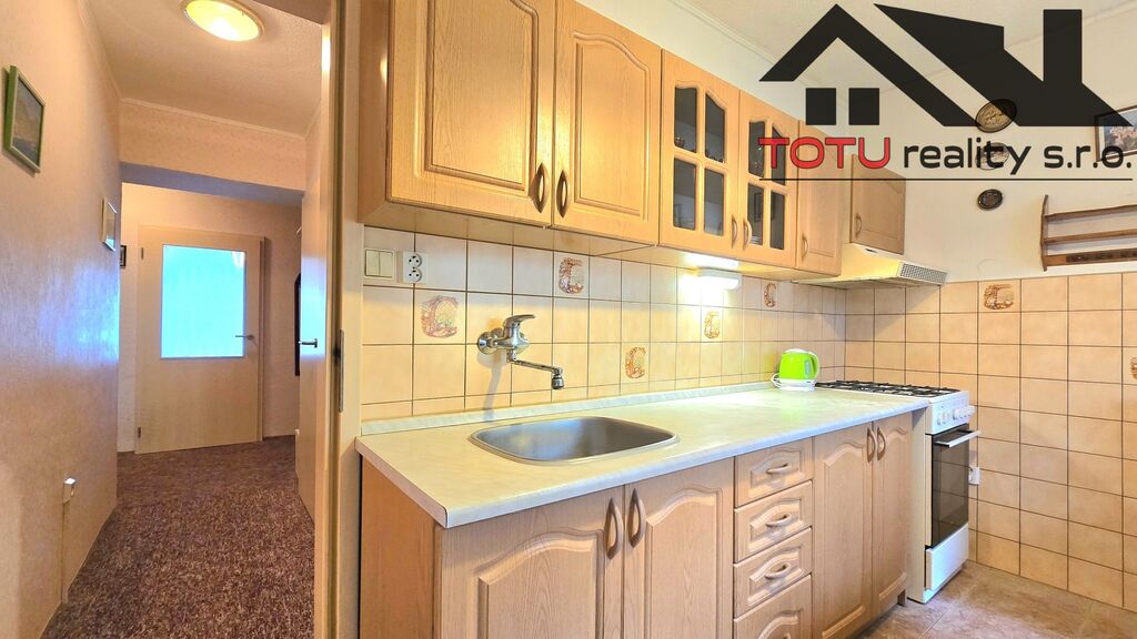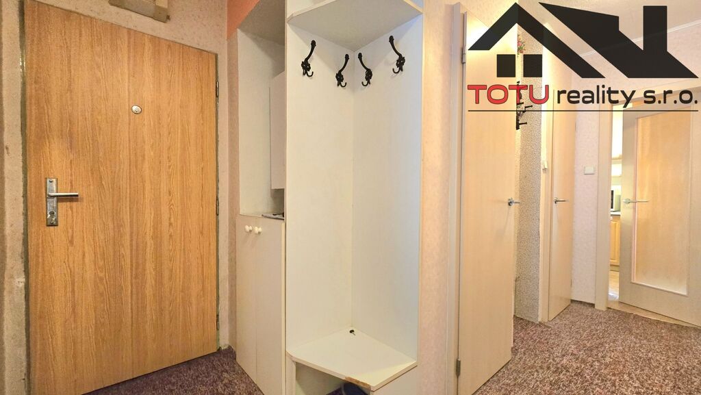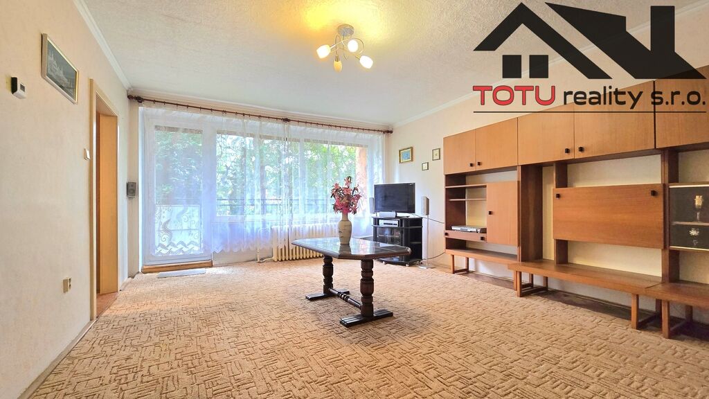 Dispozice bytu: vstupní chodba 11 m2 navazující na kuchyň 9 m2 a velkorysý obývací pokoj 21 m2, ze které je vstup do lodžie 6 m2. Ze vstupní chodby dále pak neprůchozí ložnice 13 m2 a neprůchozí dětský pokoj 9,5 m2. Koupelna s vanou, samostatná toaleta a větší úložná komora 4 m2. K bytu dále patří dvě zděné sklepní kóje.