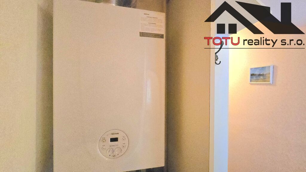 Vytápění a ohřev teplé vody zajišťuje plynový kotel, který je umístěn ve vstupní chodbě bytu.