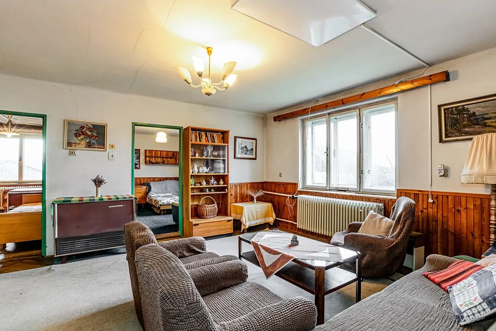 Dům postavený na pozemku o velikosti 1846m², jenž na základě geometrického plánu bude oddělen, územním plánem schválený jako stavební parcela nabízí možnost přikoupení pozemku o výměře 900m² - veškeré sítě u hranice pozemku.