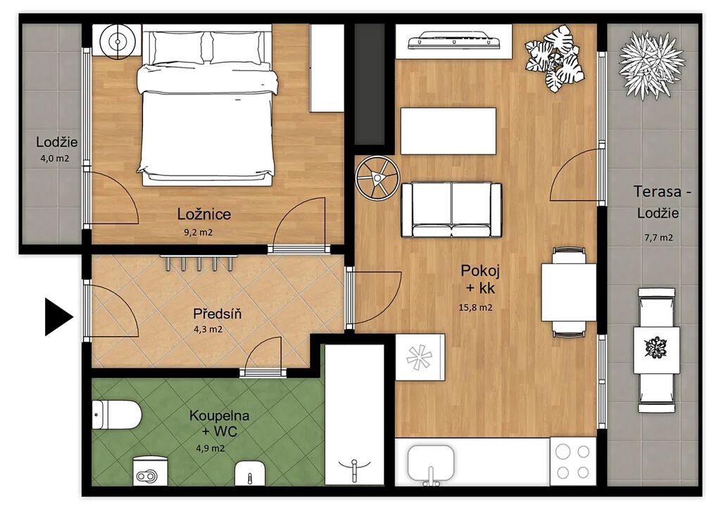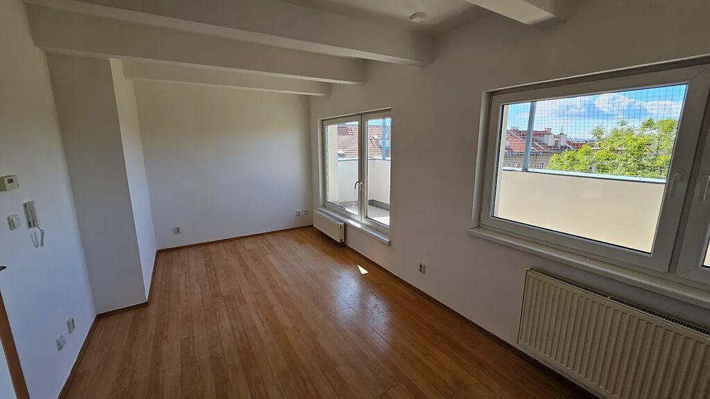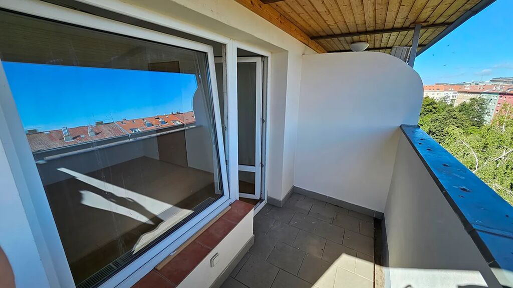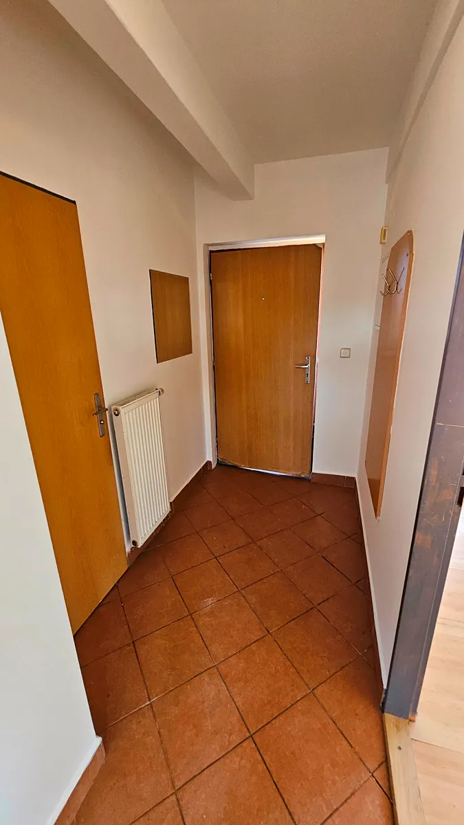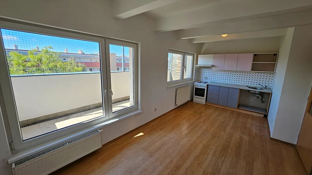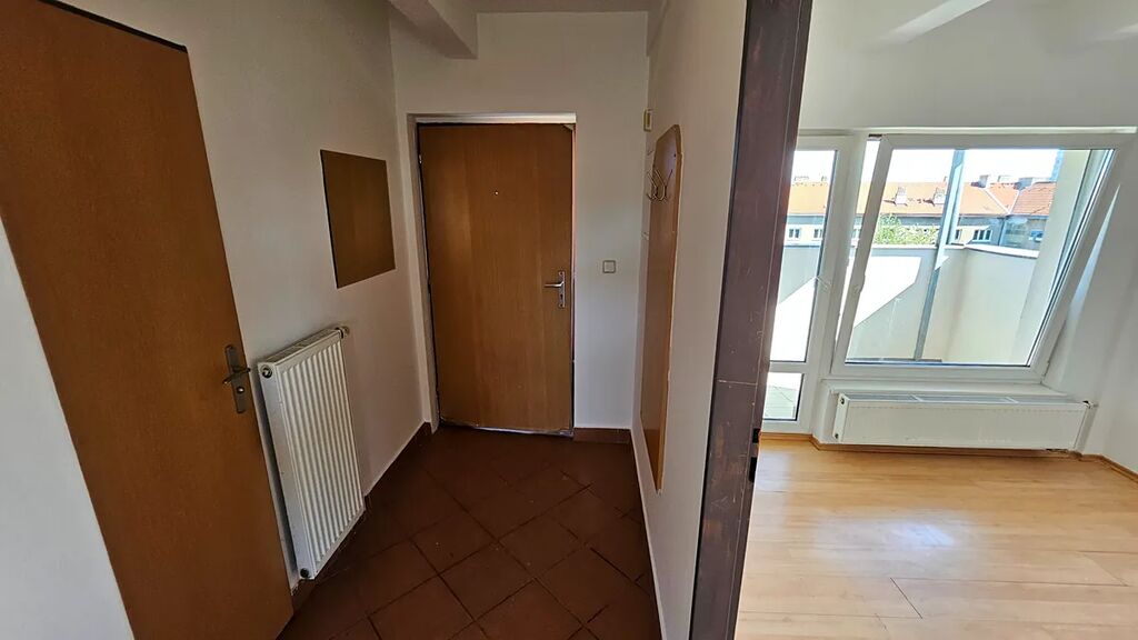 Byt 2+kk + terasa + lodžie, cihla, Praha 4, ulice Humpolecká, OV, 46 m2 (34 m2 byt + 8 m2 terasa + 4 m2 lodžie) + 2 m2 sklep v suterénu domu, 6. nadzemní podlaží, výtah, krajní byt, terasa na JZ, lodžie na SV, ústřední topení na vlastní plynový kotel, v domě provedena kompletní výměna plynových, vodovodních a a kanalizačních stoupaček.