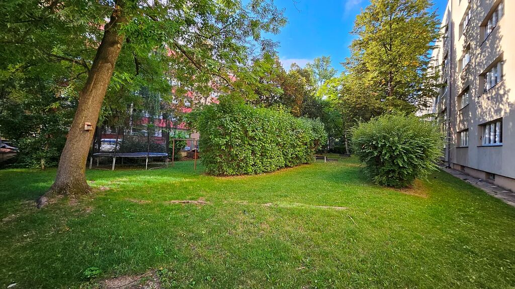 Byt včetně podílu na pozemcích pod domem a zahrady (zahrada o výměře 990 m2 ve spoluvlastnictví členů SVJ je oplocená, vstup na klíč, používaná pouze pro vlastníky bytů jako zahrada – herní prvky pro děti, venkovní sezení), dobře fungující SVJ, slušný dům.