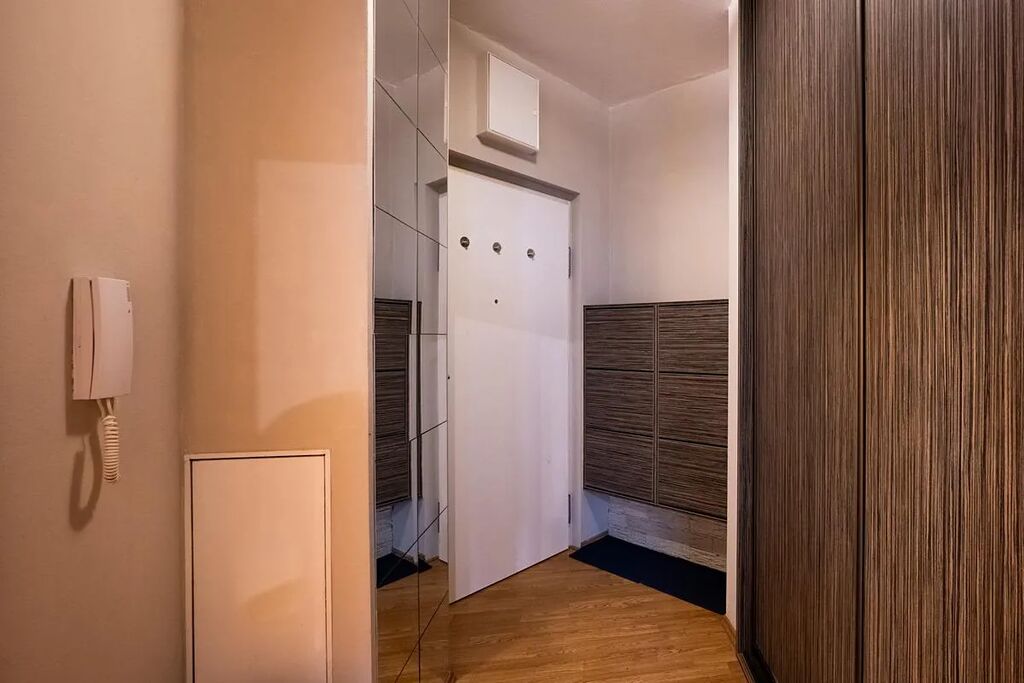 Spolu s bytem se nabízí podzemní garážové stání, které se nachází hned ve vedlejším domě. Stání je prostorné a uzpůsobené i pro větší vozy.