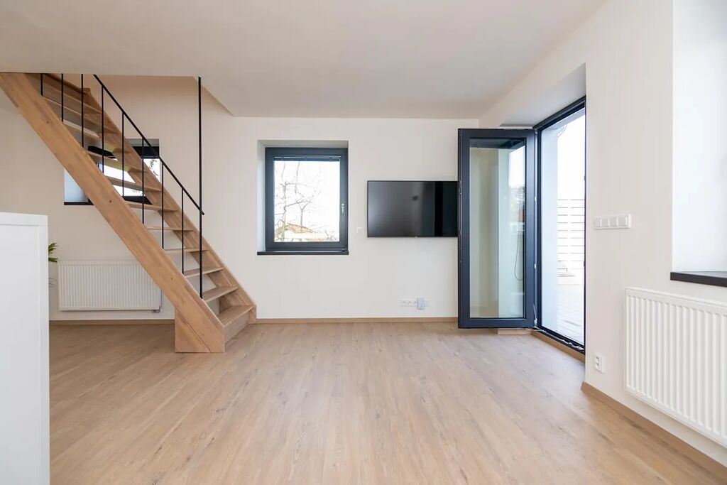 K pronájmu prostorný a moderně vybavený mezonet 2+kk v lukrativní lokalitě Průhonice. Byt se nachází v 1. patře kompletně zrekonstruovaného domu a disponuje vlastní terasou s absolutním soukromím a výhledem na uzavřený dvůr s fitness a wellness.