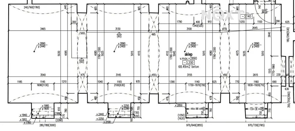 Komerční prostor, o výměře 55,1 m2, se nalézá v 1. podzemním podlaží cihlového domu z počátku minulého století.