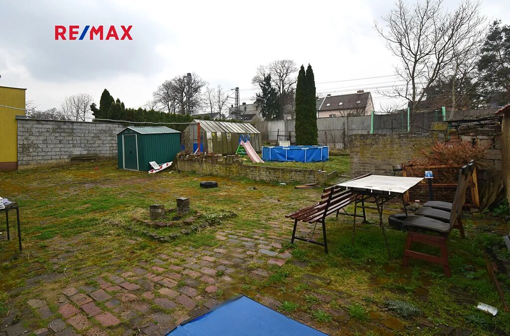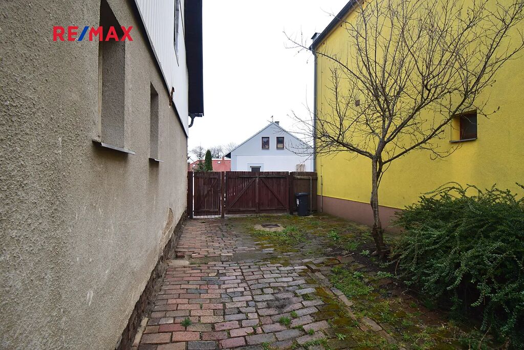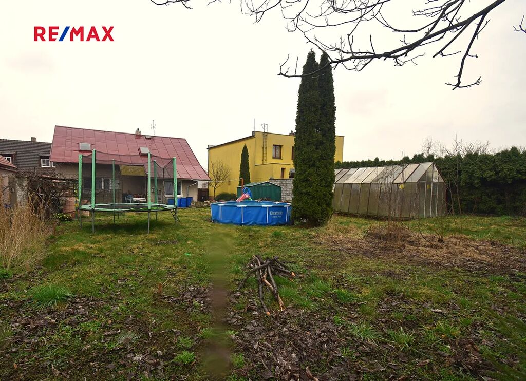 K domu náleží úměrná zahrada, na kterou lze vjet pohodlně jakýmkoli vozem. V současné době je zde plechový domek na zahradní nářadí a skleník. Také je zde k užívání kopaná studna, která je využívána společně se sousedem. Zahrada, která je za domem, nabízí příjemné rodinné soukromí, perfektním místo pro letní grilování, dětské hry nebo jen tak relaxaci. Zde je nutné konstatovat, že několik metrů od hranice pozemku je železniční trať. Nicméně, je zde i účinná protihluková stěna, která výrazně eliminuje negativní hluky. Kanalizační přípojka je před vraty a jímka (kam je momentálně sveden odpad) na pozemku za vraty.