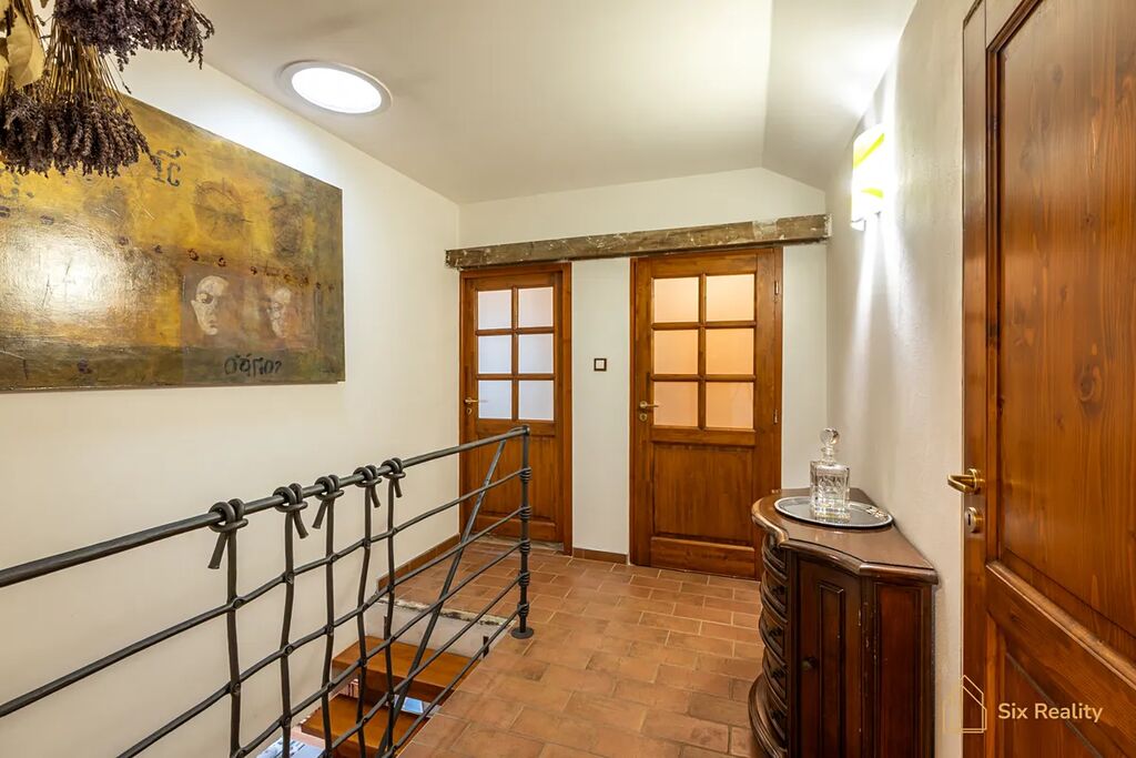 Rodinný dům s dispozicí 6+kk a výměrou 245 m2 celkové užitné plochy disponuje přízemím, obytným podkrovím a suterénem. Z obývacího pokoje v přízemí, kde budete trávit nejvíce času je vstup přímo na zahradu, kde vás uchvátí naprosto famózní výhled do krajiny přes koruny stromů.