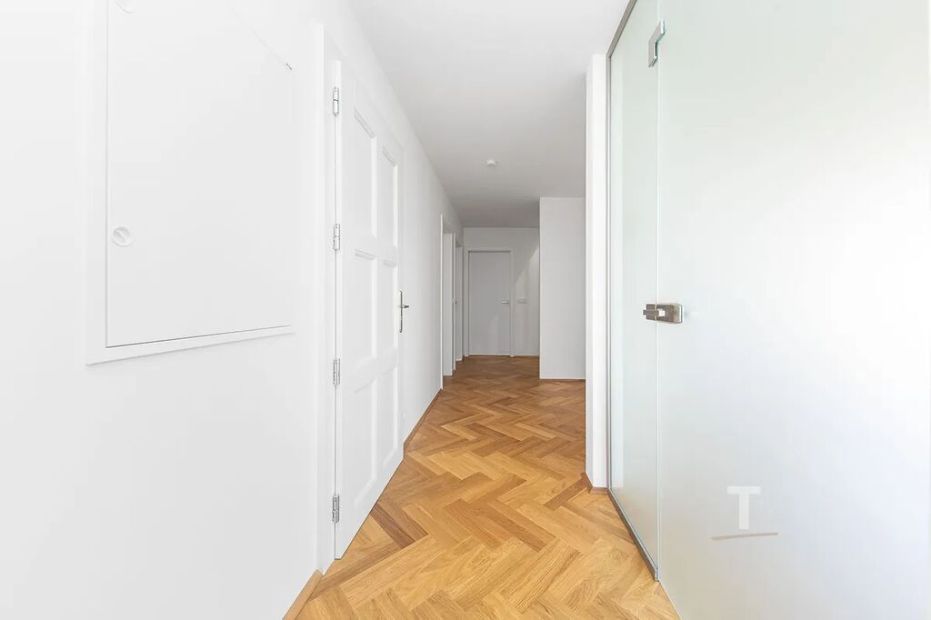• Luxusní materiály – dubové parkety, velkoformátové obklady a dlažby, repliky původních špaletových oken a vstupních dveří.