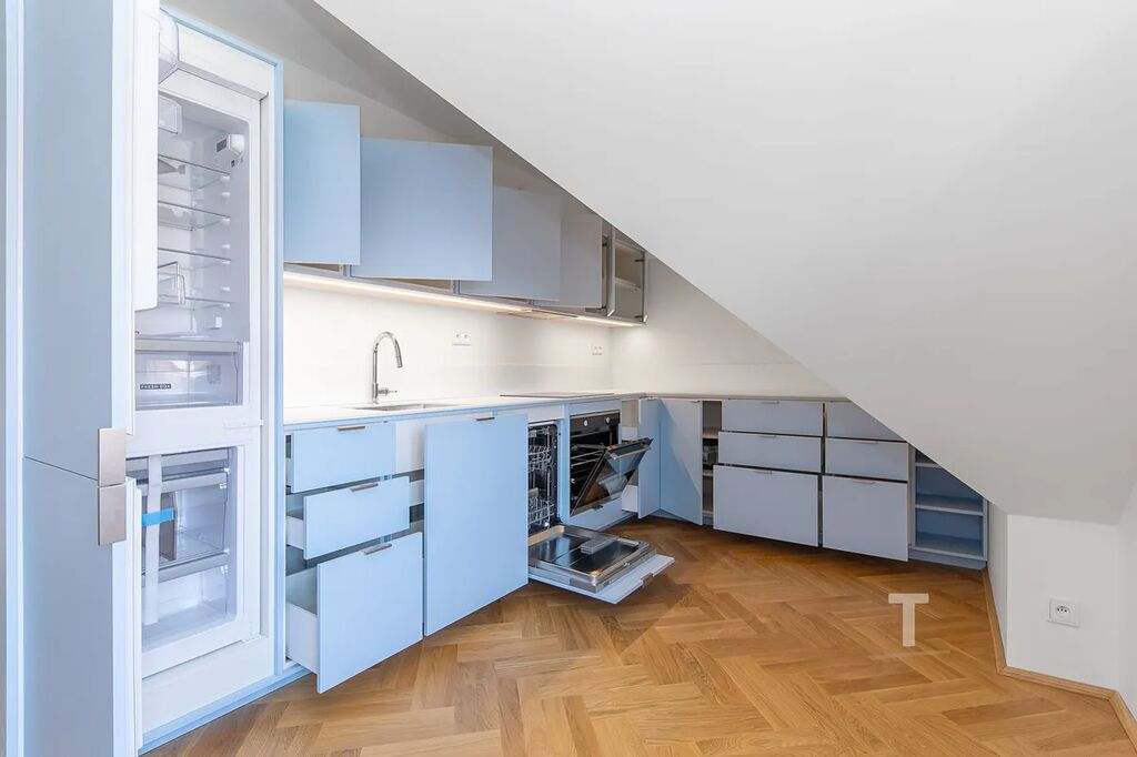 Představuji Vám jedinečnou příležitost ke koupi luxusního podkrovního bytu 5+kk o velikosti 167,8 m² s terasou 4,4 m2, situovaného v klidné a vyhledávané lokalitě Hradešínská na Vinohradech. Tento byt je součástí pečlivě zrekonstruované rodinné vily s pouhými několika bytovými jednotkami, což zaručuje maximální soukromí a exkluzivní atmosféru.