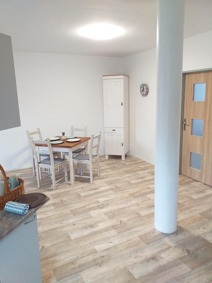 Nabízíme k pronájmu velmi pěkný byt o dispozici 3+kk (65 m2) ve Volyni. Dispozičně je nyní byt rozdělen na obývací pokoj propojený s kuchyní, neprůchozí ložnicí, samostatný dětský pokoj, koupelnu s vanou, samostatnou toaletu a předsíň. Byt je po částečné rekonstrukci a je nově vymalován a připraven pro nového nájemníka. Nájemné činí 12000,- Kč + 3000,- Kč jsou zálohy na služby, kauce majiteli před podpisem nájemní smlouvy 24.000,- Kč a provize RK je jeden nájem. K bytu náleží sklep a v domě je výtah. Benefitem tohoto bydlení je určitě bezproblémové parkování přímo před domem. Byt je k dispozici od 01.11.2025.