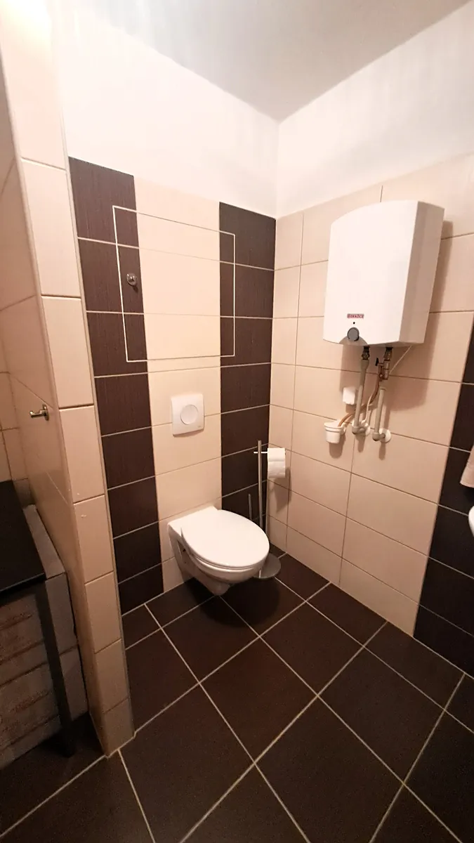 Prostor je vybaven sociálním zázemím a napojen na dálkové vytápění. Vhodný k využití jako kancelář, ateliér, sklad s administrativním zázemím apod.