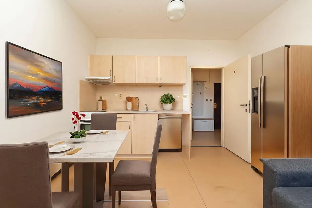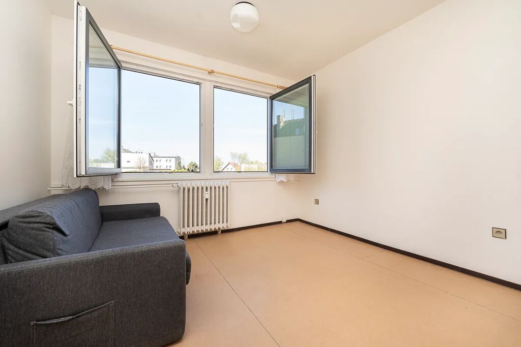Byt disponuje dvěma prostornými pokoji, které díky velkým oknům přímo září denním světlem. V jednom z nich je umístěna praktická kuchyňská linka připravená na Vaše kulinářské výtvory. Velkou výhodou je prostorná vstupní chodba, kde lze vytvořit šatnu, pracovnu či komoru dle Vašich potřeb.