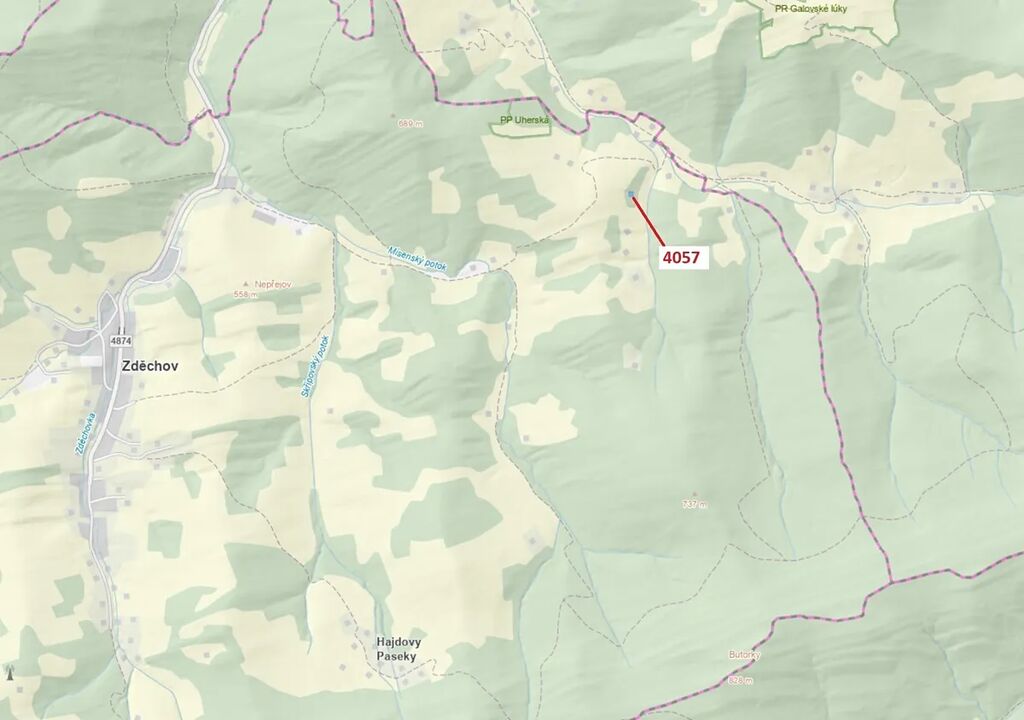 Lesní pozemek o výměře 435 m2, parcelní číslo 4057, podíl 1/1, katastrální území Zděchov, obec Zděchov, obec s rozšířenou působností Vsetín, okres Vsetín, Zlínský kraj.