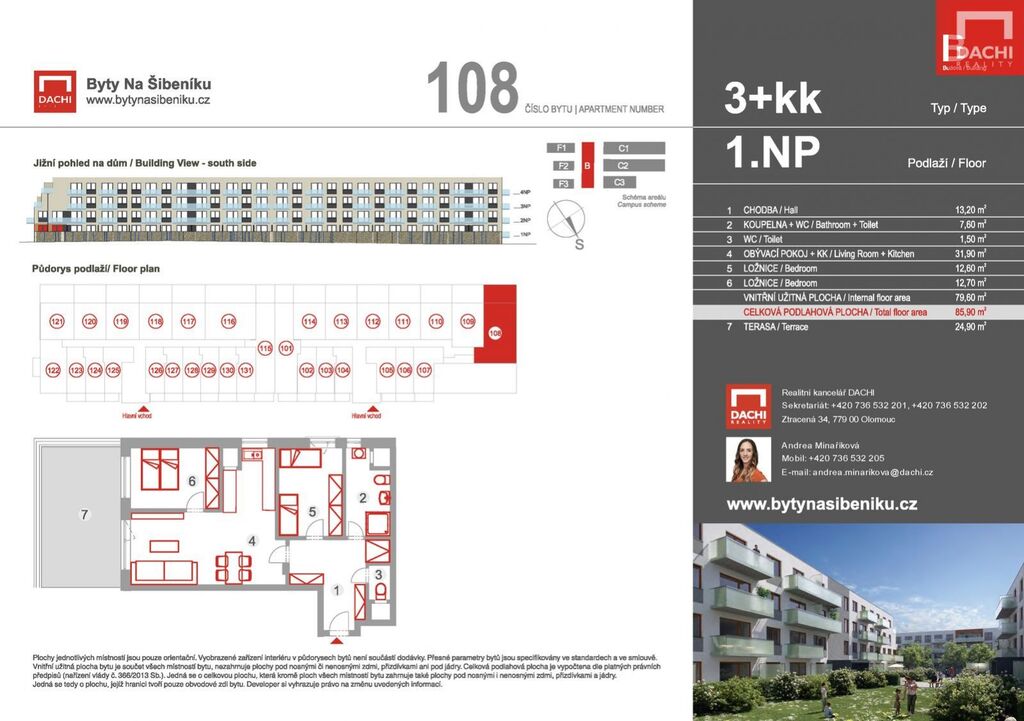 Navazujeme na úspěch první etapy a přinášíme vám jedinečnou příležitost pořídit si nový domov v atraktivním projektu Byty Na Šibeníku. DACHI, prodejce a partner developera, vám v rámci druhé etapy nabízí ke koupi moderní byt 3+kk (č. 108) o ploše 85,9 m s terasou 24,9m. Byt se nachází v 1. nadzemním podlaží nového bytového domu B, který je součástí šestipodlažního objektu se čtyřmi nadzemními a dvěma podzemními podlažími. Ačkoliv se byt nachází v 1. nadzemním podlaží, poskytuje díky terase a dostatečné výšce nad terénem dostatek soukromí.