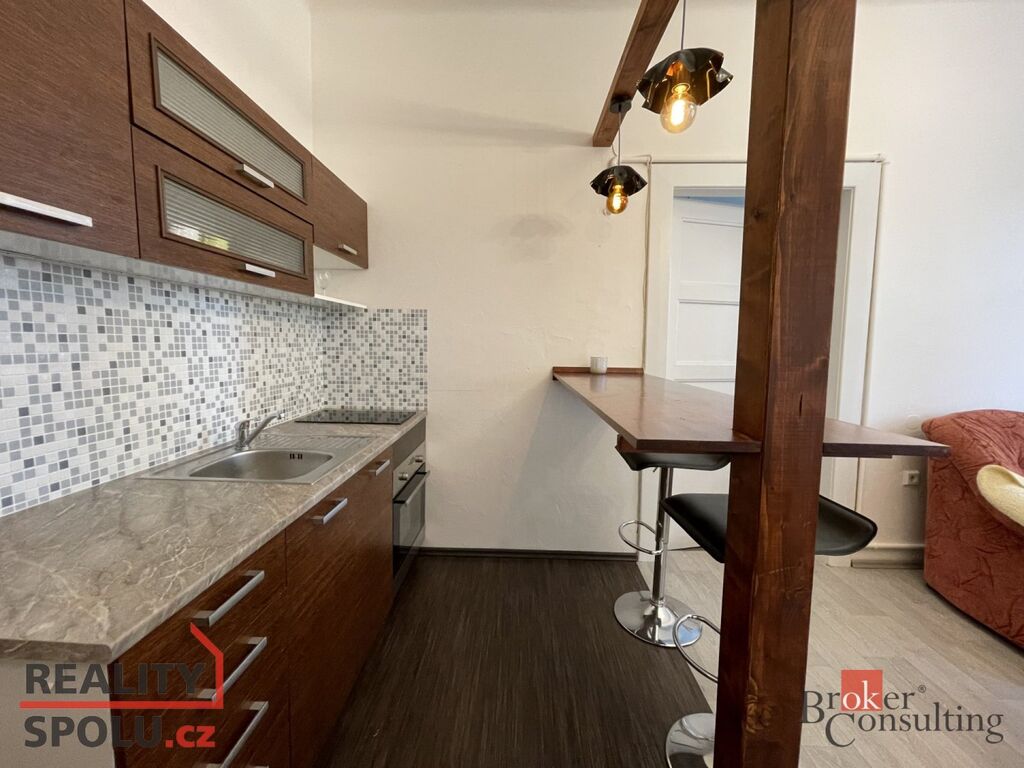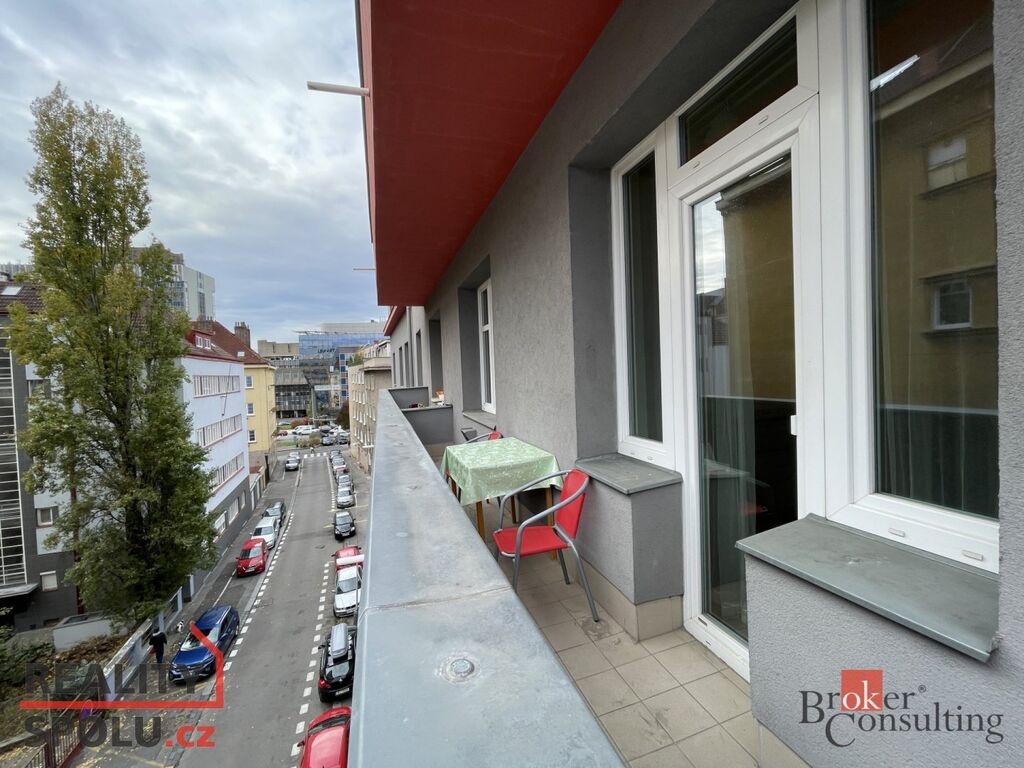 Byt je umístěn ve 4. nadzemním podlaží cihlového domu. Je rozdělen na obývací pokoj s kuchyňským koutem, ložnicí s balkonem, předsíní, komorou, koupelnou a oddělenou toaletou. K bytu dále náleží prostorný sklep v podzemním podlaží a je možné se po domluvě dohodnout na pronájmu garáže, kterou naleznete ve dvoře domu.
