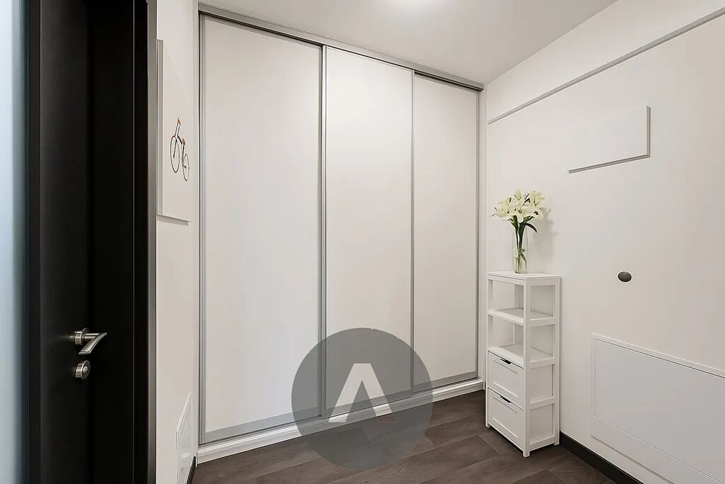 Chodba: prostorné vestavěné skříně poskytující dostatek úložného prostoru.