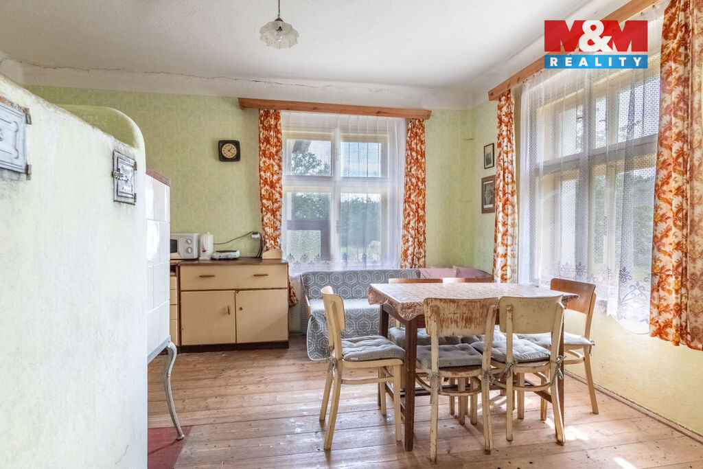 Nabízíme k prodeji jedinečnou nemovitost v malebné jihočeské obci Skaličany, pouhé 2 km od Blatné. Tento samostatně stojící rodinný dům o obytné ploše 78 m² je situován na okraji obce, v těsné blízkosti rybníka, což zaručuje klid a soukromí. Pozemek o celkové rozloze 1549 m² lze rozdělit, čímž vznikne další zastavitelný pozemek o rozloze cca 900 m². Nemovitost je v původním stavu, před rekonstrukcí, což nabízí skvělou příležitost přizpůsobit si bydlení podle vlastních představ. V domě jsou tři obytné místnosti, a místnost pro vybudování koupelny a WC. Dominantou kuchyně je tradiční pec s kachlovými kamny. Rozlehlá půda je ideální pro vybudování půdní vestavby a rozšíření tak obytné plochy této nemovitosti podle svých představ. Zdroj vody z kopané studny. Veškerá občanská vybavenost ve 2 km vzdálené Blatné. Nemovitost je ideální pro ty, kteří hledají klidné bydlení nebo rekreaci.