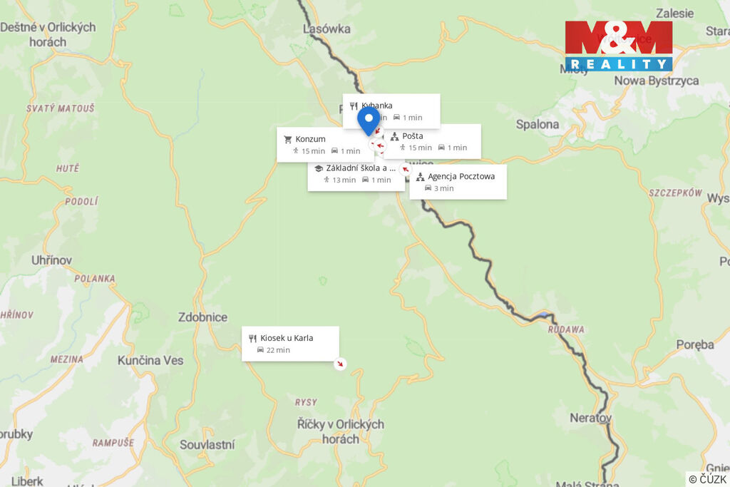 Stavební parcela o výměře 1517 m² ve vyhledávané lokalitě Orlické Záhoří. Pozemek se nachází v klidné části obce, v blízkosti nově vybudovaného SKI Areálu Orlické Záhoří a také kousek poblíž Bedřichovka, což z něj činí ideální příležitost pro výstavbu rekreačního objektu či horské chaty. Rostoucí lokalita v okolí vzniká nová zástavba rekreačních nemovitostí