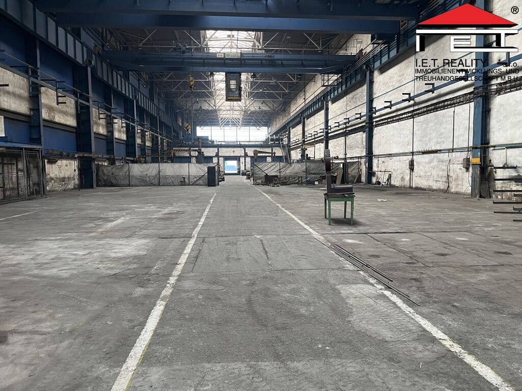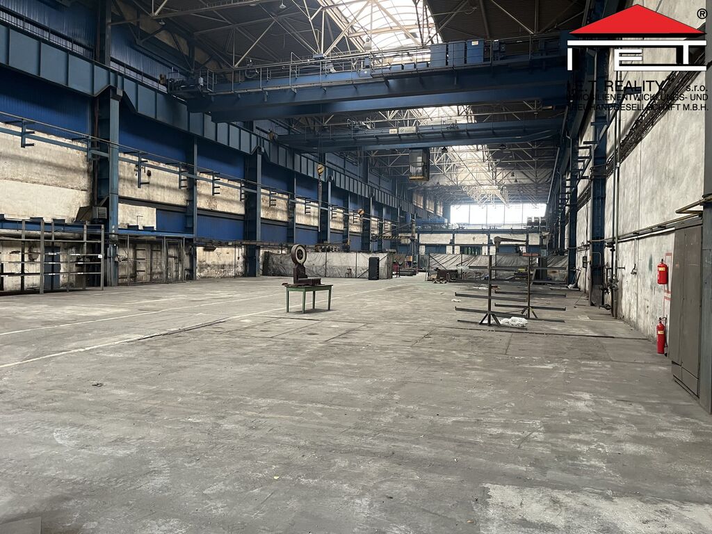 K pronájmu nabízíme výrobní/skladovou halu o ploše 1 992 m² s vlastními vraty 5 × 5 m, dvěma mostovými jeřáby (12,5 t a 5 t) a třemi sloupovými jeřáby. Hala má nosnost podlahy 7 000 kg/m², výšku jeřábů 11 m a je možné ji vytápět.