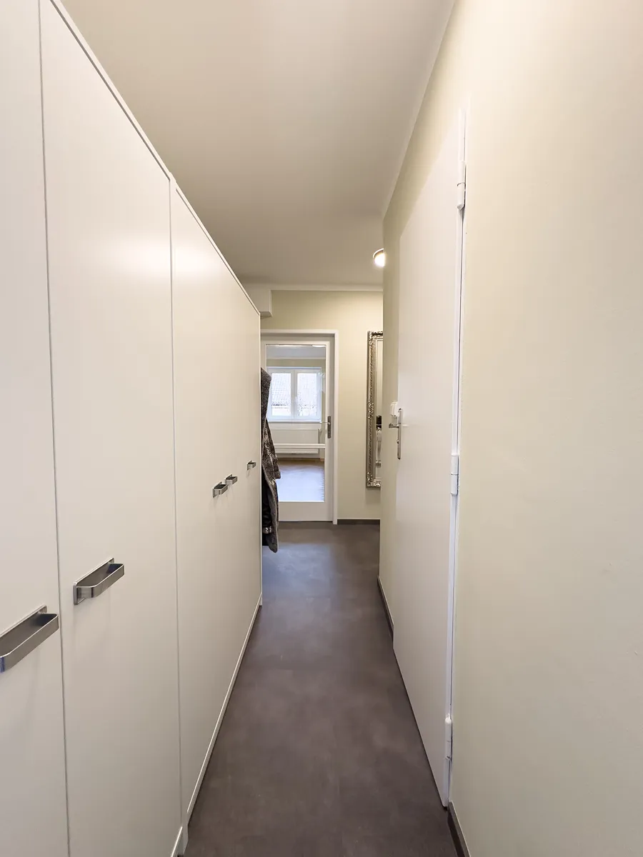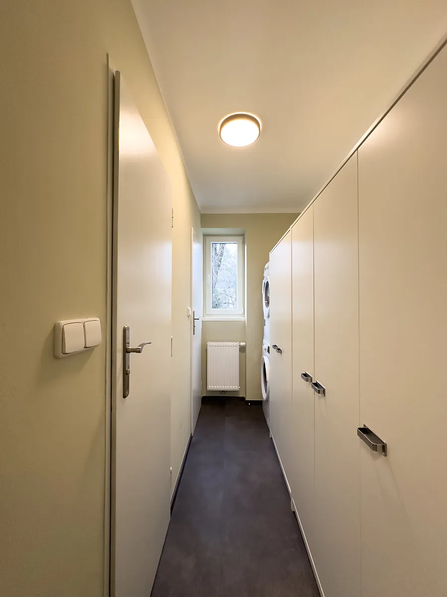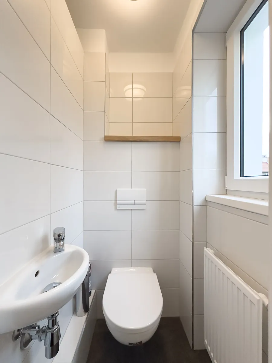 Koupelna a toaleta jsou součástí prakticky řešené dispozice bytu. O ohřev vody a vytápění se stará nový plynový kotel. V chodbě je vše připraveno na připojení internetu a televize.