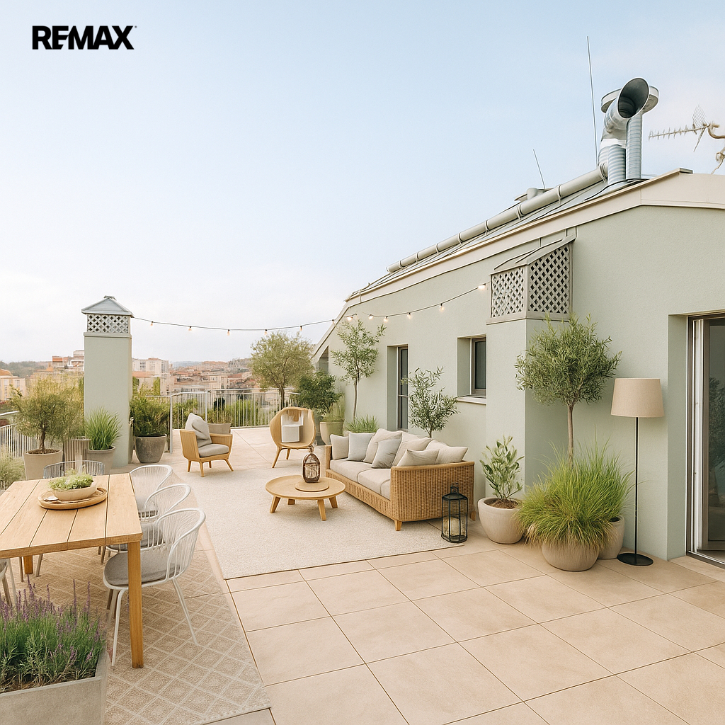 Byt disponuje dvěma terasami (31,6 m² a 22,3 m²), sklepní kójí (5,3 m²) a možností dokoupení parkovacího místa v podzemní garáži.