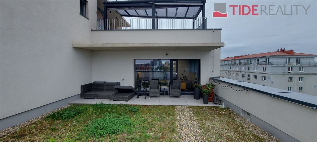 Nabízíme k pronájmu moderní, nezařízený byt 3+kk ( 75 m2) s velkou terasou ( 50 m2) a parkovacím místem v podzemních garážích. Byt se nachází v nedávno dokončené novostavbě na klidném místě ve Strašnicích 10 min chůze od stanice metra Strašnická. Byt sestává z obývacího pokoje spojeného s plně vybavenou a moderní kuchyní s přímým vstupem na úžasnou a prostornou z části zatravněnou privátní terasu, 2 ložnic, které mají výstup na dlouhý balkon cca 10 m2 a obě jsou situované do klidné a tiché zástavby, koupelny se sprchovým koutem, samostatného WC a chodby. Součástí nájmu je rovněž sklepní kóje v suterénu domu. V bytě jsou vestavěné šatní skříně a vertikální žaluzie ve všech oknech. Byt se nachází v 7.patře s výtahem a je orientovaný na jihozápad. Volný od 1.1.2026. Byt je zkolaudován jako ateliér tak je vhodný i na kanceláře, či pro společnosti které jsou plátci DPH. PENB B