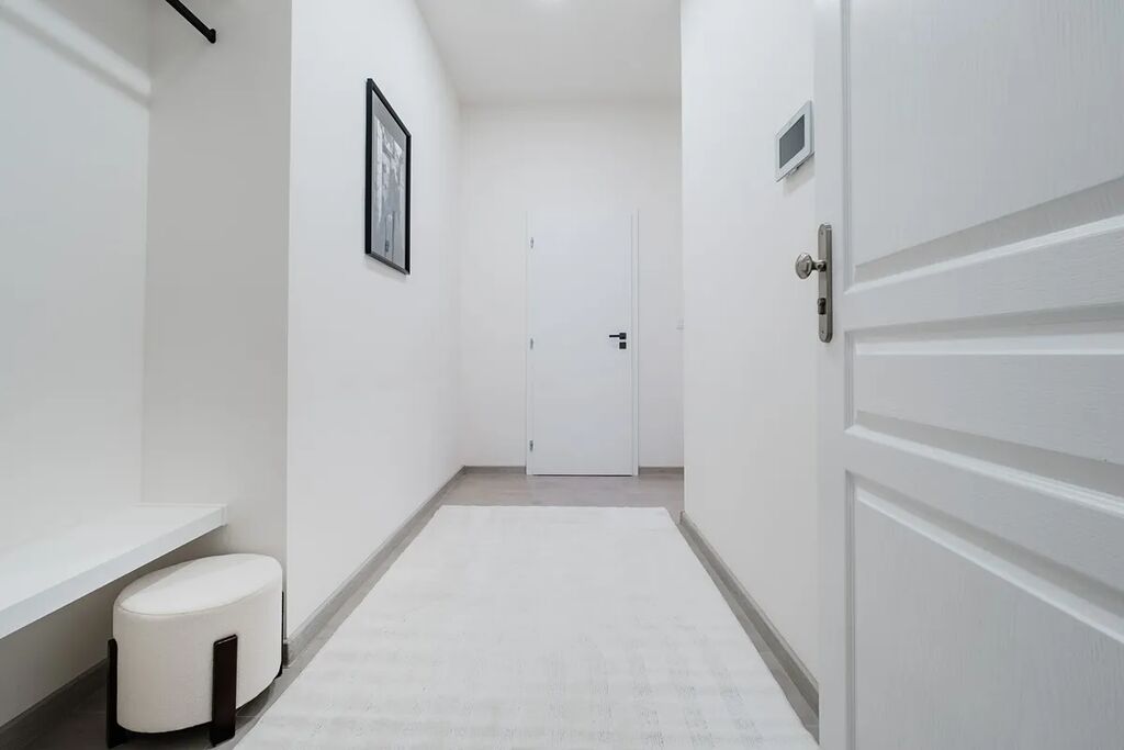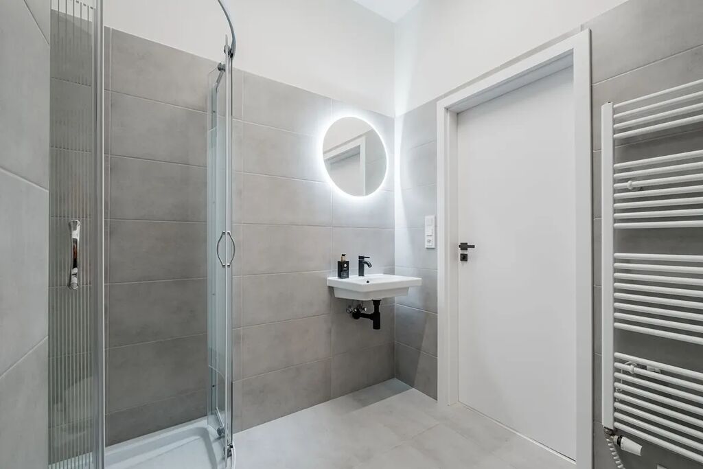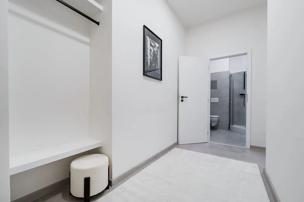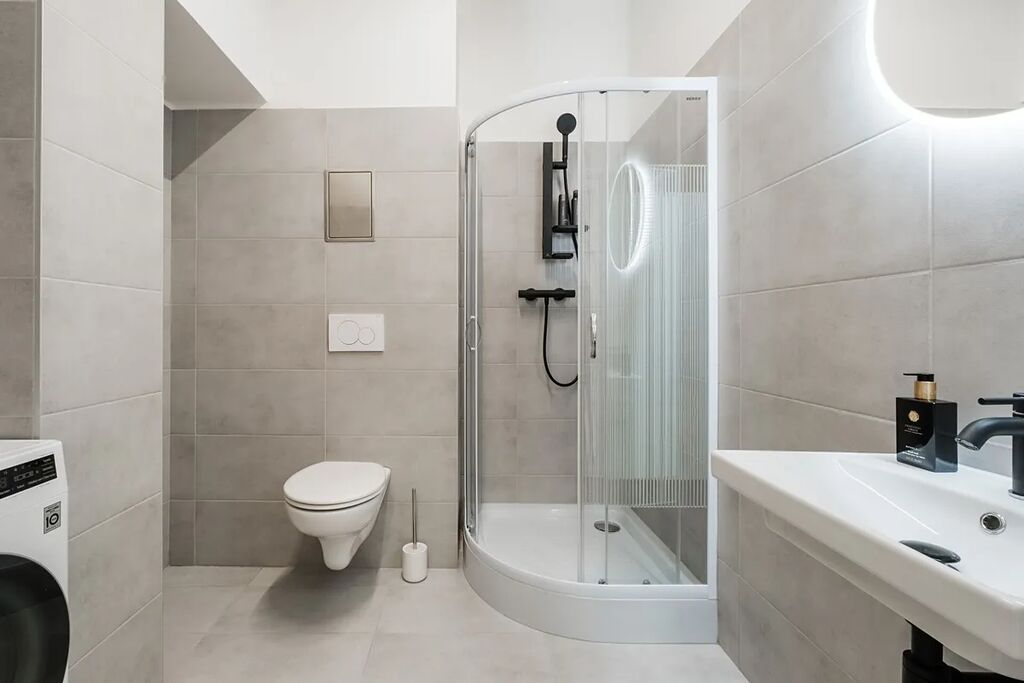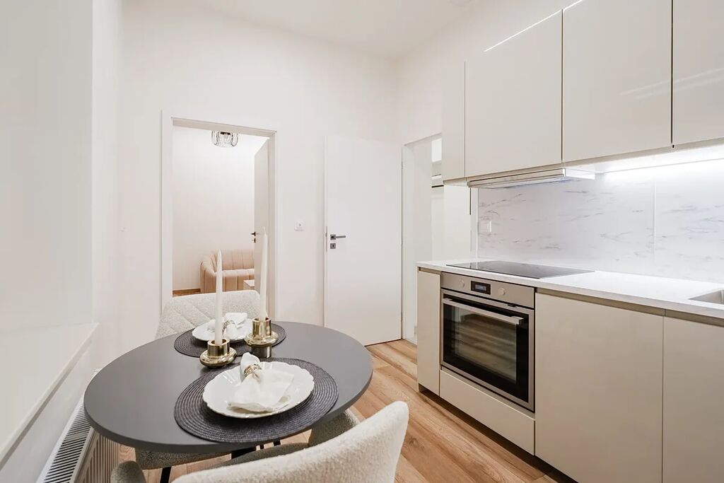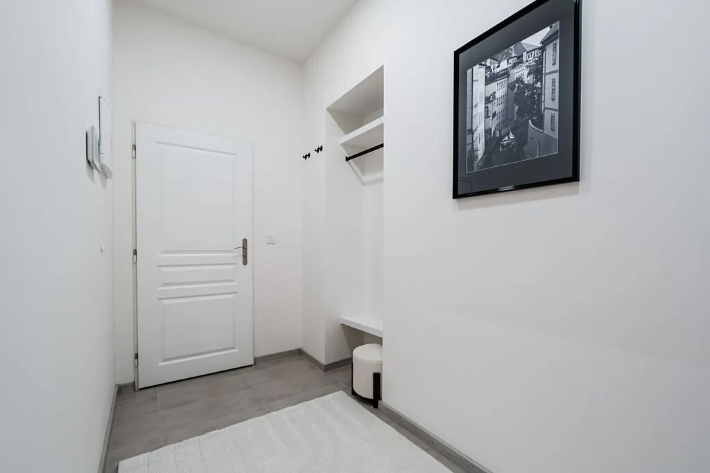 Po vstupu do bytu Vás uvítá prostorná chodba, ze které je přímý vstup do koupelny vybavené sprchovým koutem, toaletou a pračkou se sušičkou. Následně se dostanete do kuchyňské části, kde je nová kuchyňská linka s vestavěnými spotřebiči, mezi které patří lednice s mrazákem, myčka, trouba a indukční deska. Poslední místností je obývací prostor spojený s ložnicí, který nabízí gauč, televi, postel a další vybavení, takže byt je připraven k okamžitému nastěhování bez nutnosti dalších investic.