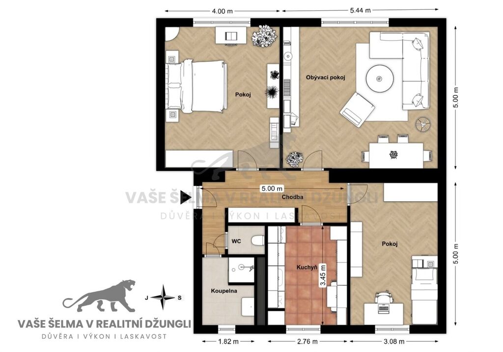 všechny pokoje neprůchozí - štědré pokoje