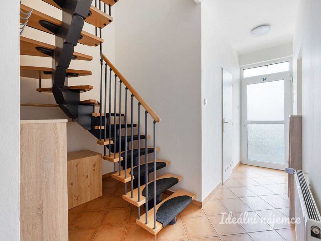 K dlouhodobému pronájmu nabízíme hezký atypický, částečně zařízený mezonet 4+kk o výměře 119 m2 nacházející se v řadovém bytovém komplexu v klidné rezidenční lokalitě středočeských Nehvizd s výborným dopravním napojením na Prahu. Ve spodním patře se kromě toalety a prostorného obývacího pokoje s kuchyňským koutem s přirozeným osvětlením nachází další pokoj využitelný jako pracovna či ložnice, horní patro je vyhrazeno dvěma ložnicím s vlastní prostornou koupelnou s toaletou. K bytu náleží venkovní parkovací stání před domem.