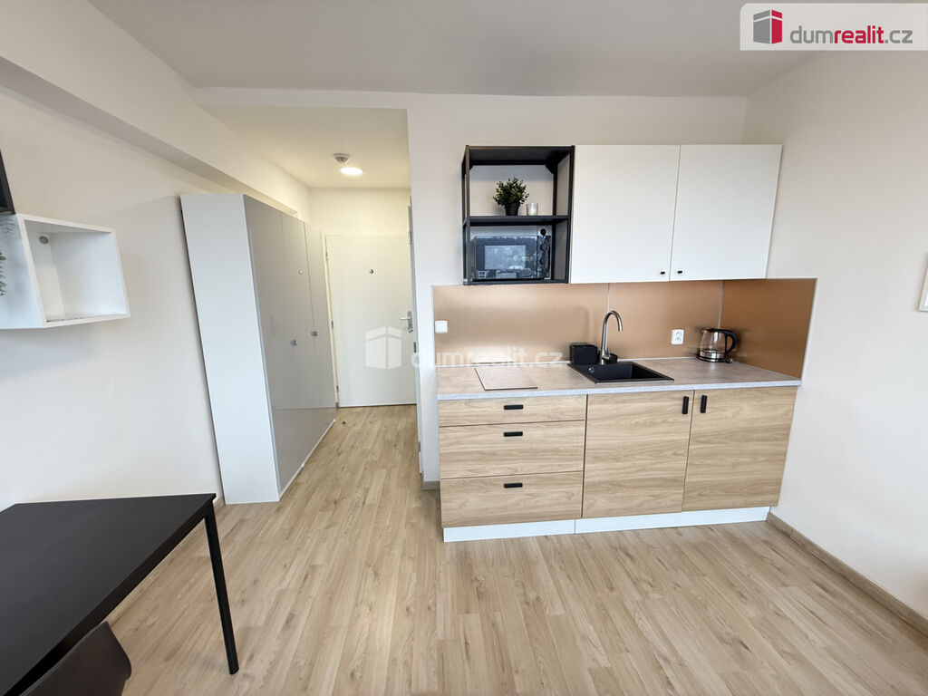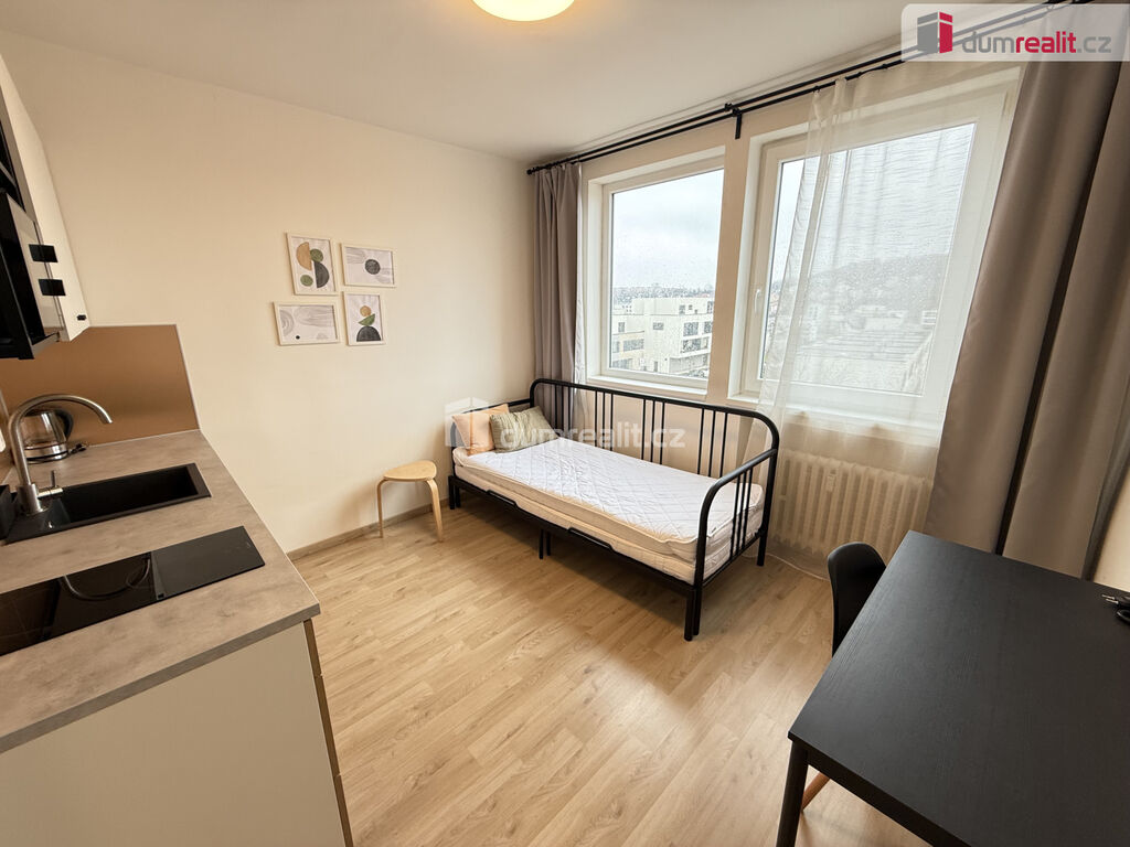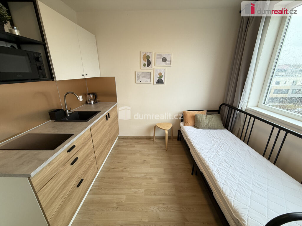 Dumrealit.cz Vám zprostředkuje možný pronájem zařízeného bytu 1+kk na Praze 5 v Jinonicích v 8. patře domu s výtahem, v projektu VBLOKU. Byt se nabízí kompletně zařízený, je menší, ale přesto velmi prakticky dispozičně řešený a plnohodnotně vybavený. Je vybavený moderní kuchyňskou linkou se spotřebiči (lednice, mikrovlnná trouba,sklokeramická varná deska). V prostoru se dále nachází klasický jídelní/ pracovní stůl se židlí a pohodlná malá postel. Koupelna se sprchovým koutem a umyvadlem s rozměrným zrcadlem je obložena bílými obklady a dlažbou modré barvy. Úložné prostory Vám nabídne šatní skříň umístěna na chodbě. Využívat můžete také společné prostory rezidence – zahradu (včetně grilu), komunitní zahrádku pro pěstování bylinek a zeleniny nebo TV room. Zároveň zde funguje nonstop recepce, prádelna, sušárna a fitness centrum. K nastěhování ihned. Doporučuji. Ev. číslo: 652658.